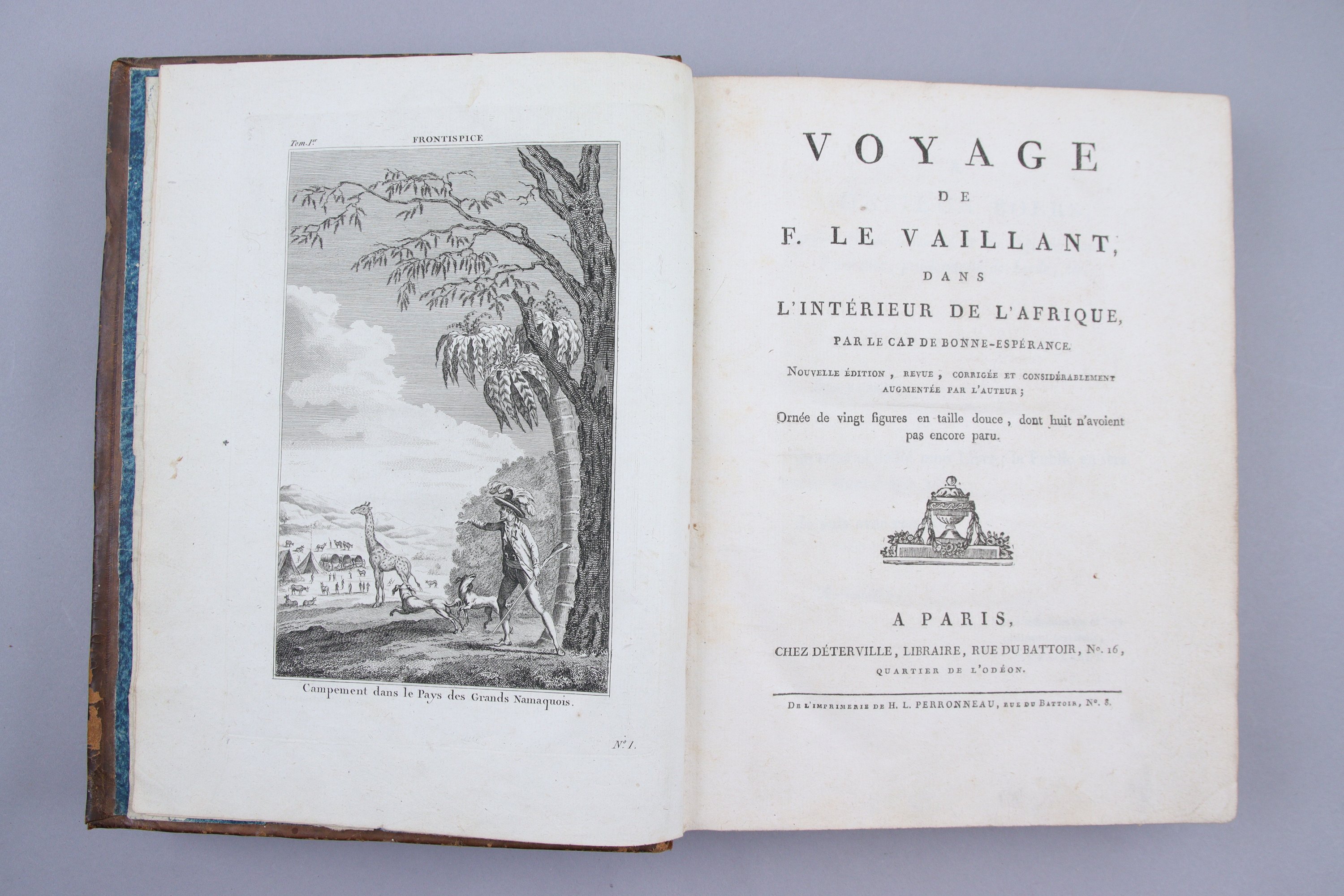 Voyage de F. Le Vaillant dans l'intérieur de l'Afrique par le Cap de Bonne Espérance. Nouvelle édition, revue, corrigée et considérablement augmentée par l'auteur. Orné de 20 figures en taille douce, dont huit n'avoient pas encore paru.