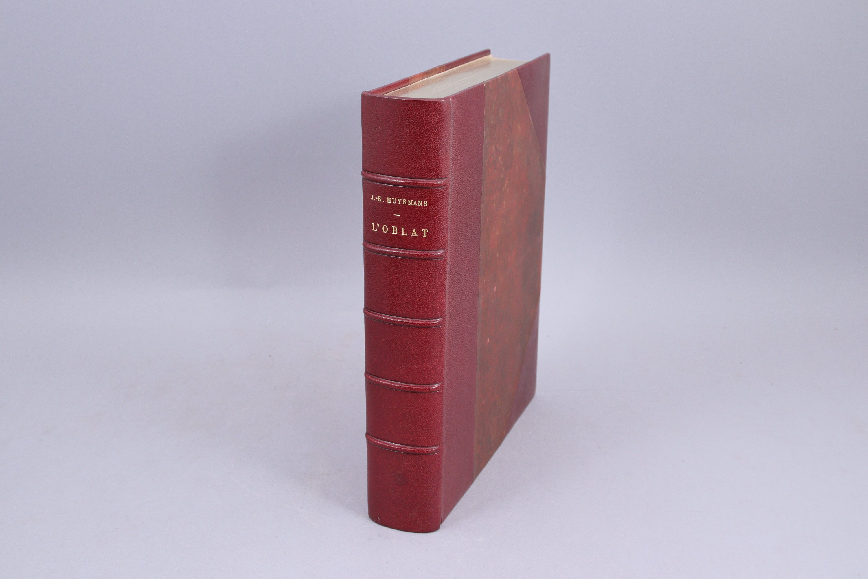 Grand in-4°. 1/2 maroquin cramoisi à coins à gros grains. Tête dorée. Couvertures et dos conservés. Reliure signée Bellevallée.