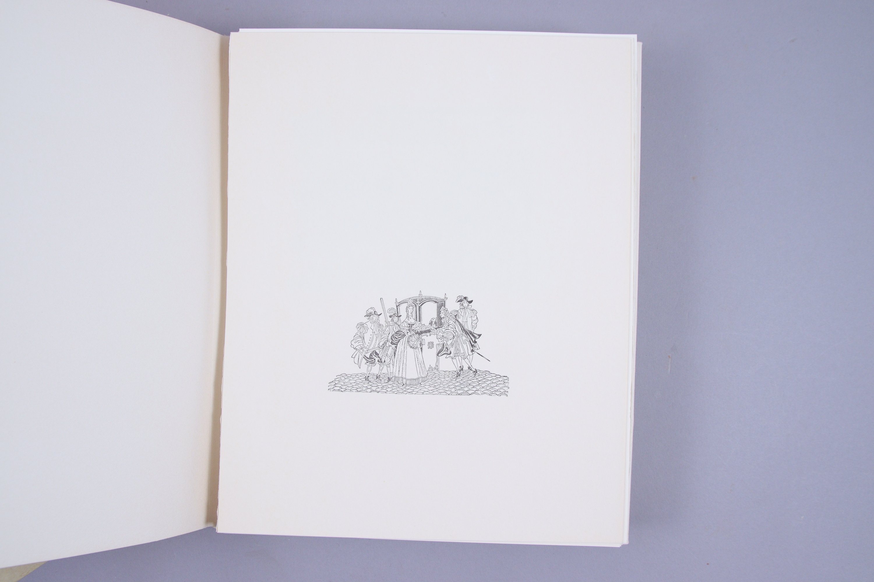 Le premier grand papier ne comprend qu'un exemplaire, 1. Le deuxième grand papier est limité à 8 exemplaires, numérotés de 2 à 9, dont celui-ci, n°5. Il est complet de toutes ses suites sur soie et sur vélin, de ses 3 aquarelles originales, , ainsi que des 3 cuivres encrés.