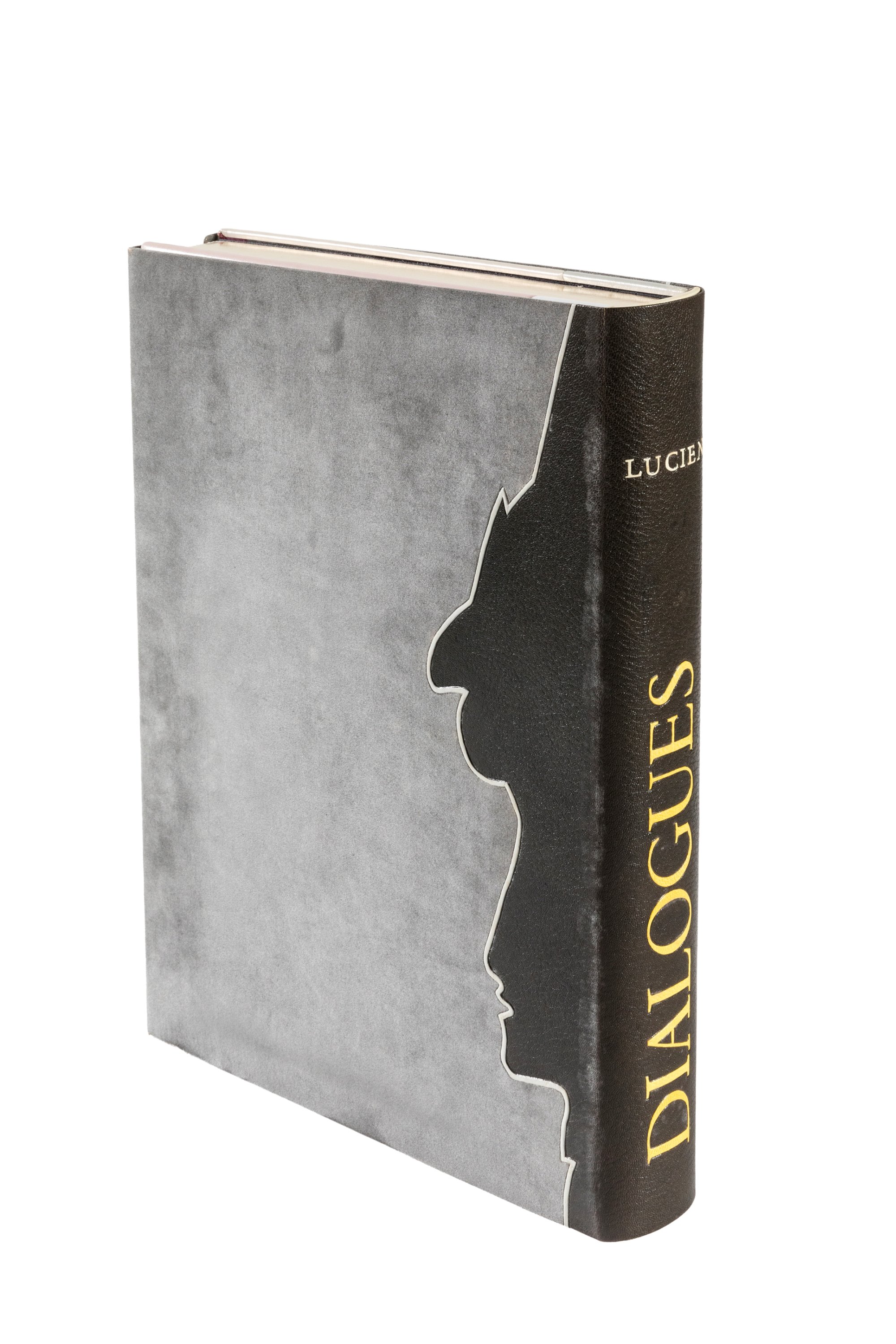 In-folio (380 X 282 mm), Mosaïque multicolore de veau sur les plats; gardes de feutrine noire, dans laquelle est intégrée une mosaïque de maroquin figurant un hoplite. Tête dorée. Chemise de feutrine gris souris avec dos de maroquin noir. Etui. Riche reliure de Ramon Gomez Herrara, un des relieurs espagnols majeurs de la seconde partie du XXème siècle.