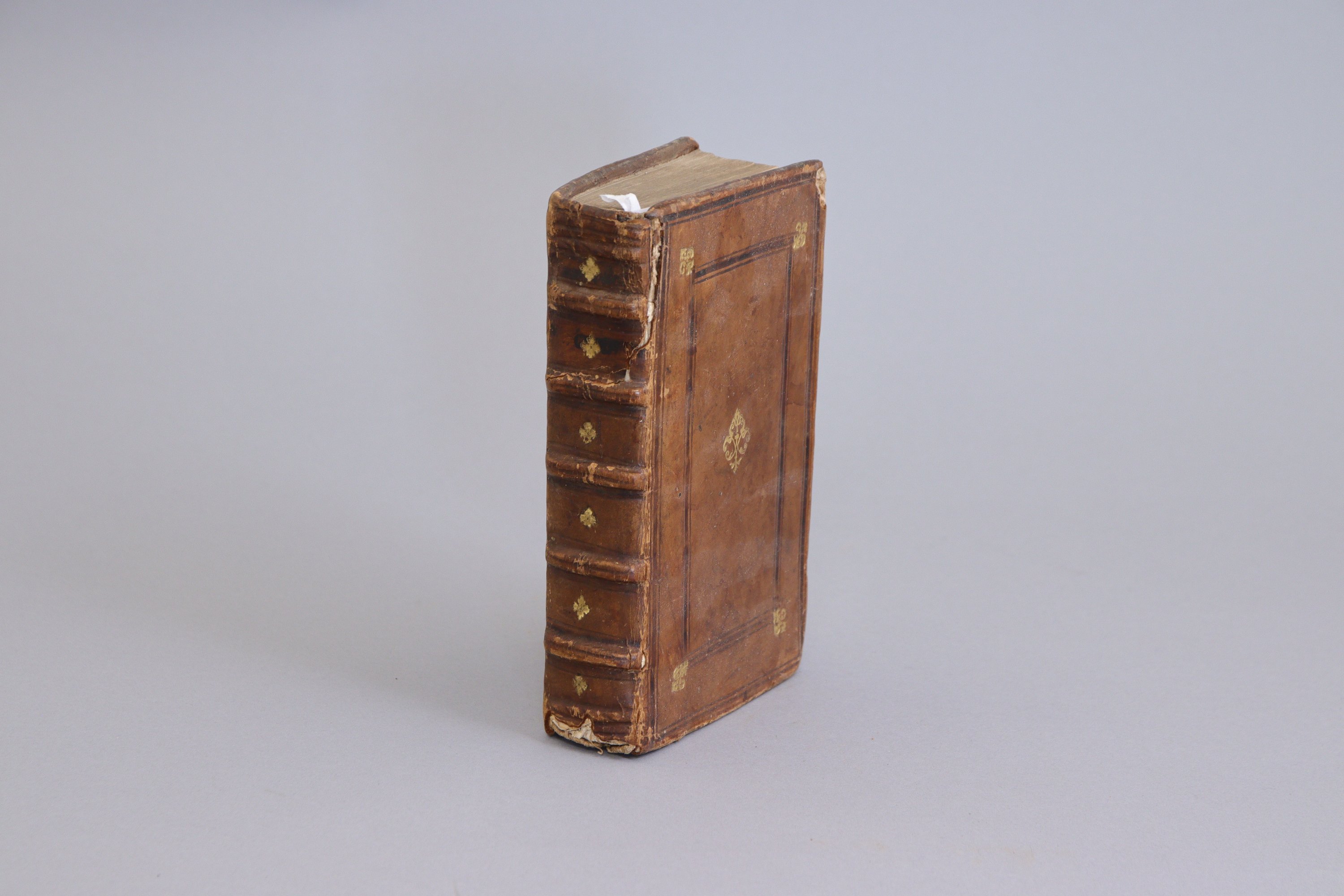 In-8, 567 pages et (36 feuillets de table). Plein veau fauve, encadrement à froid avec fleurons d'angle dorés ; fleuron central ; dos orné de fleurons dans les entre-nerfs. Reliure du temps. (Mors fendu sur 5 cm ; défauts aux coiffes, aux coupes et aux coins).