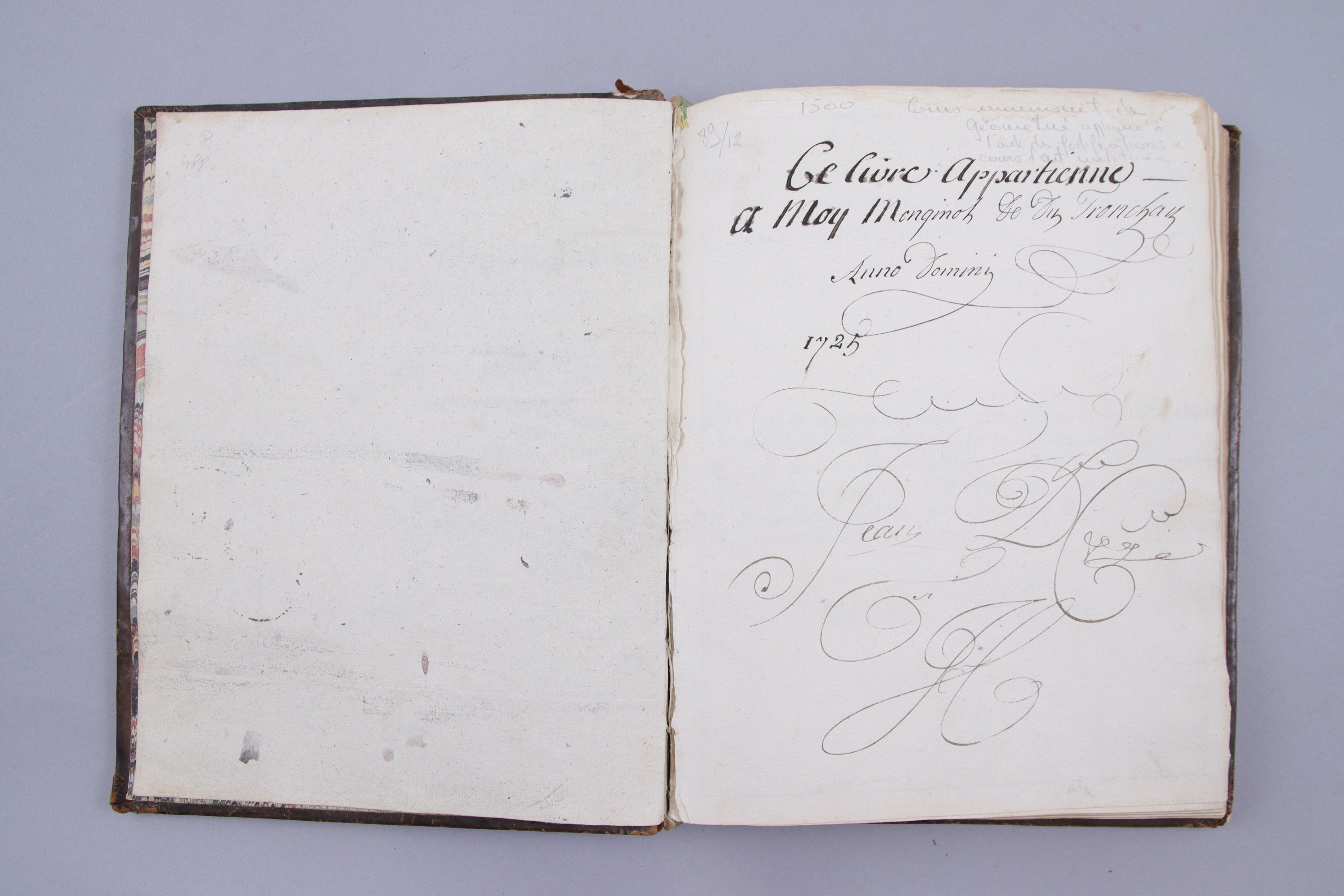 Sur la première garde volante blanche, figure l'ex-libris manuscrit suivant :"Ce livre appartienne à moy, Monginot du Tronchay, anno domini 1725.