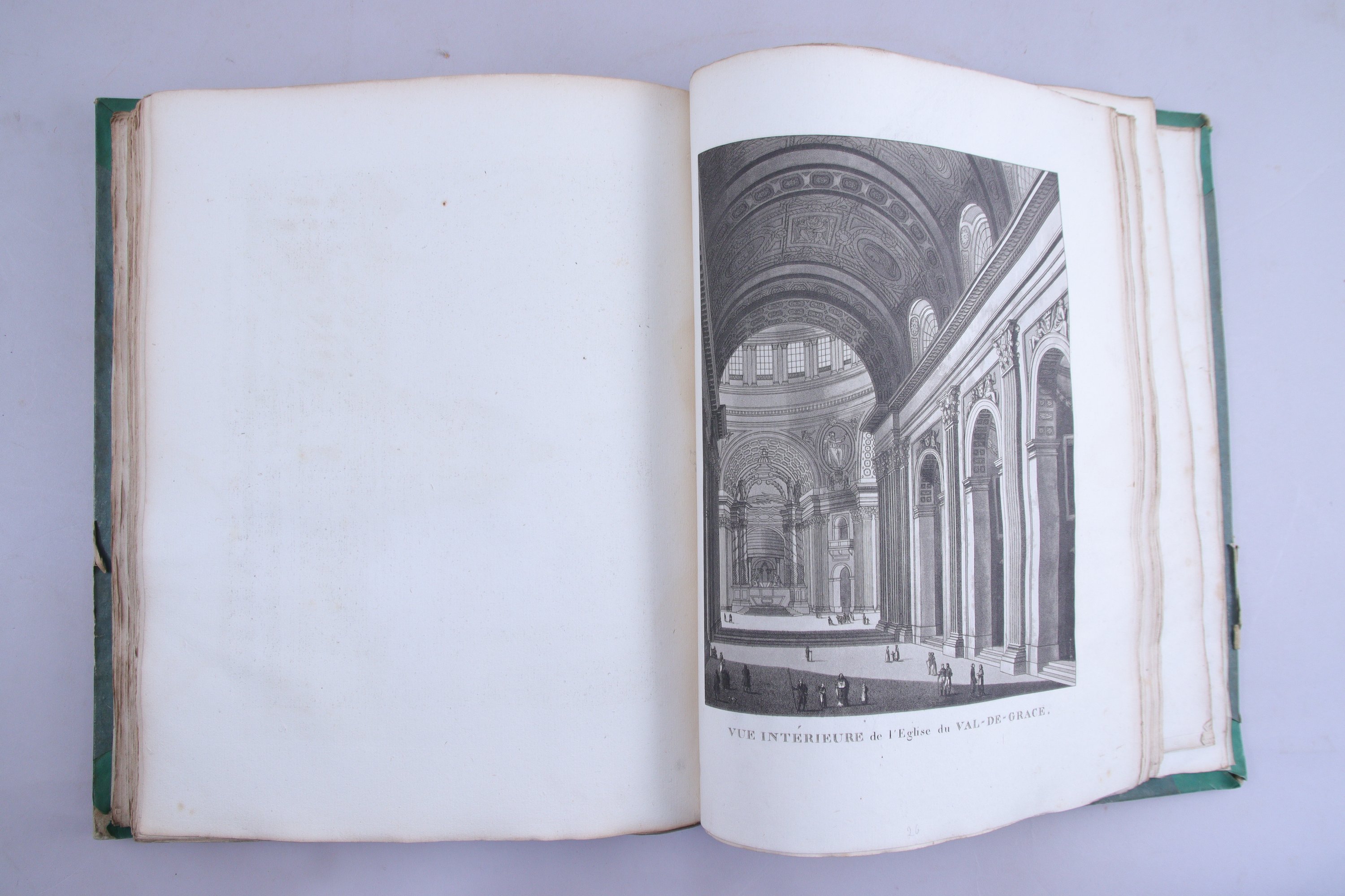 4 volumes grand in-4° (315 X 235 mm) dont 1 volume d'atlas. 1/2 basane mouchetée, coins de vélin vert ; reliure du temps. Exemplaire non rogné.)..