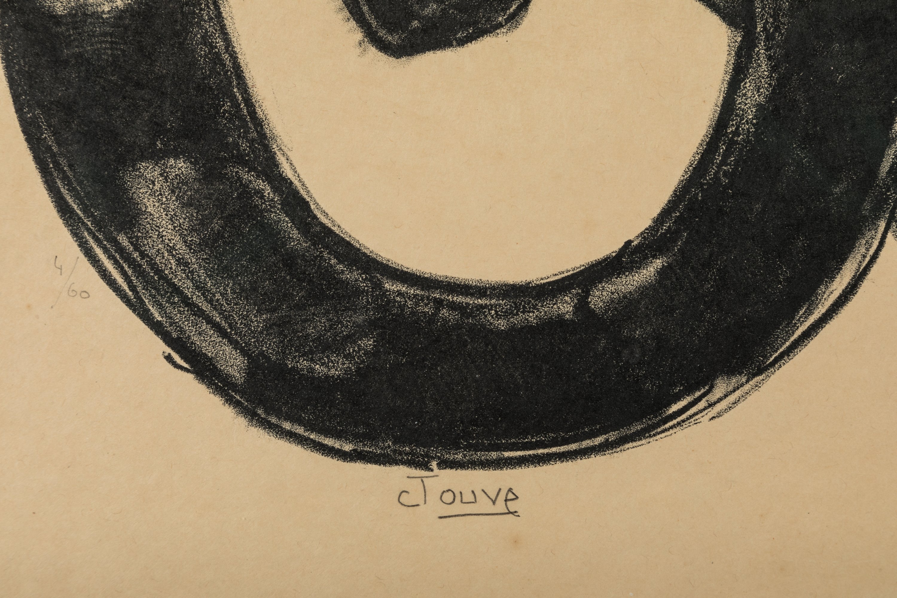Signée et numérotée "4/60" en bas à gauche, cachet à froid « Jouve peintre graveur» à gauche.