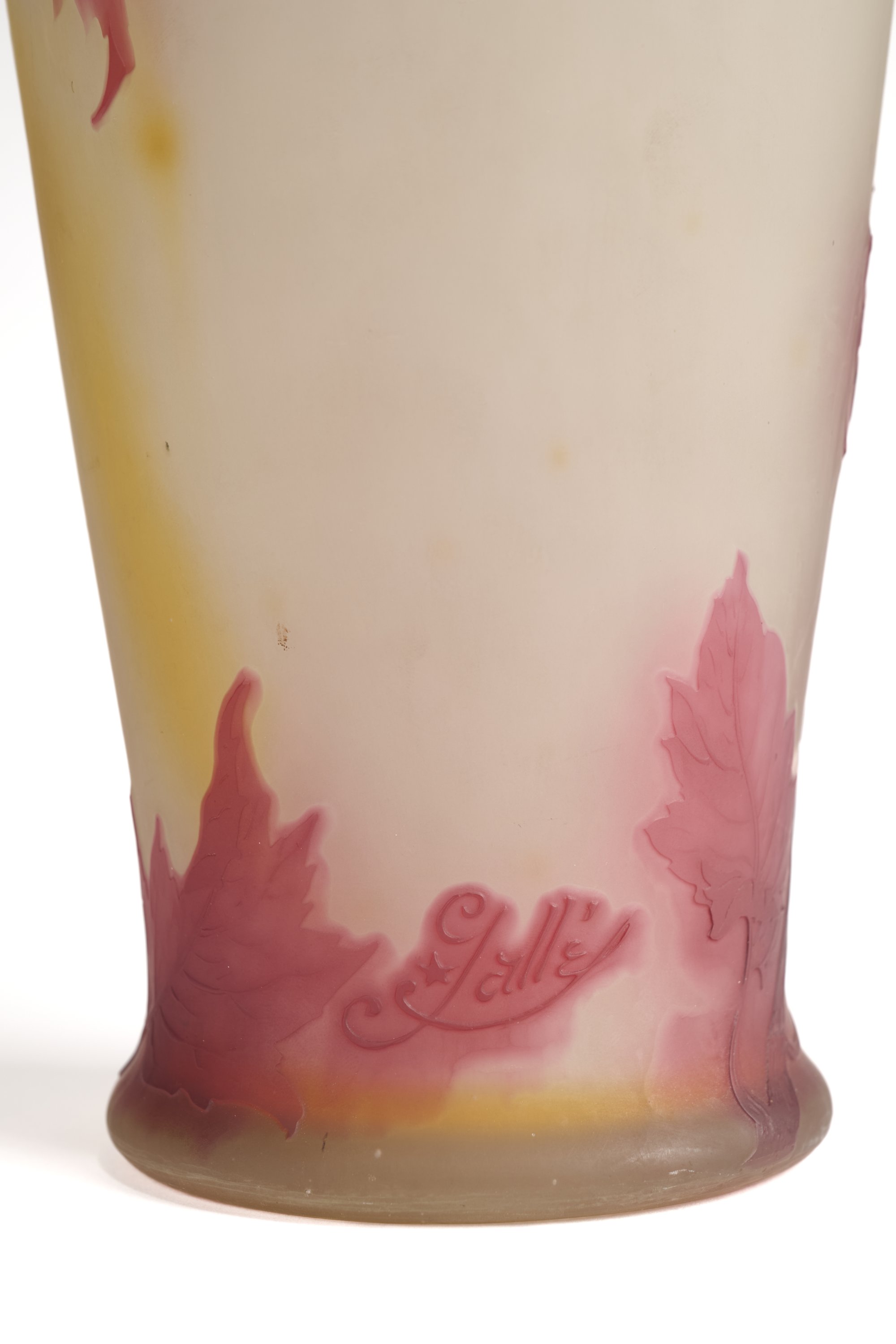 Verre multicouches à décor de cassissier dégagé à l'acide.
