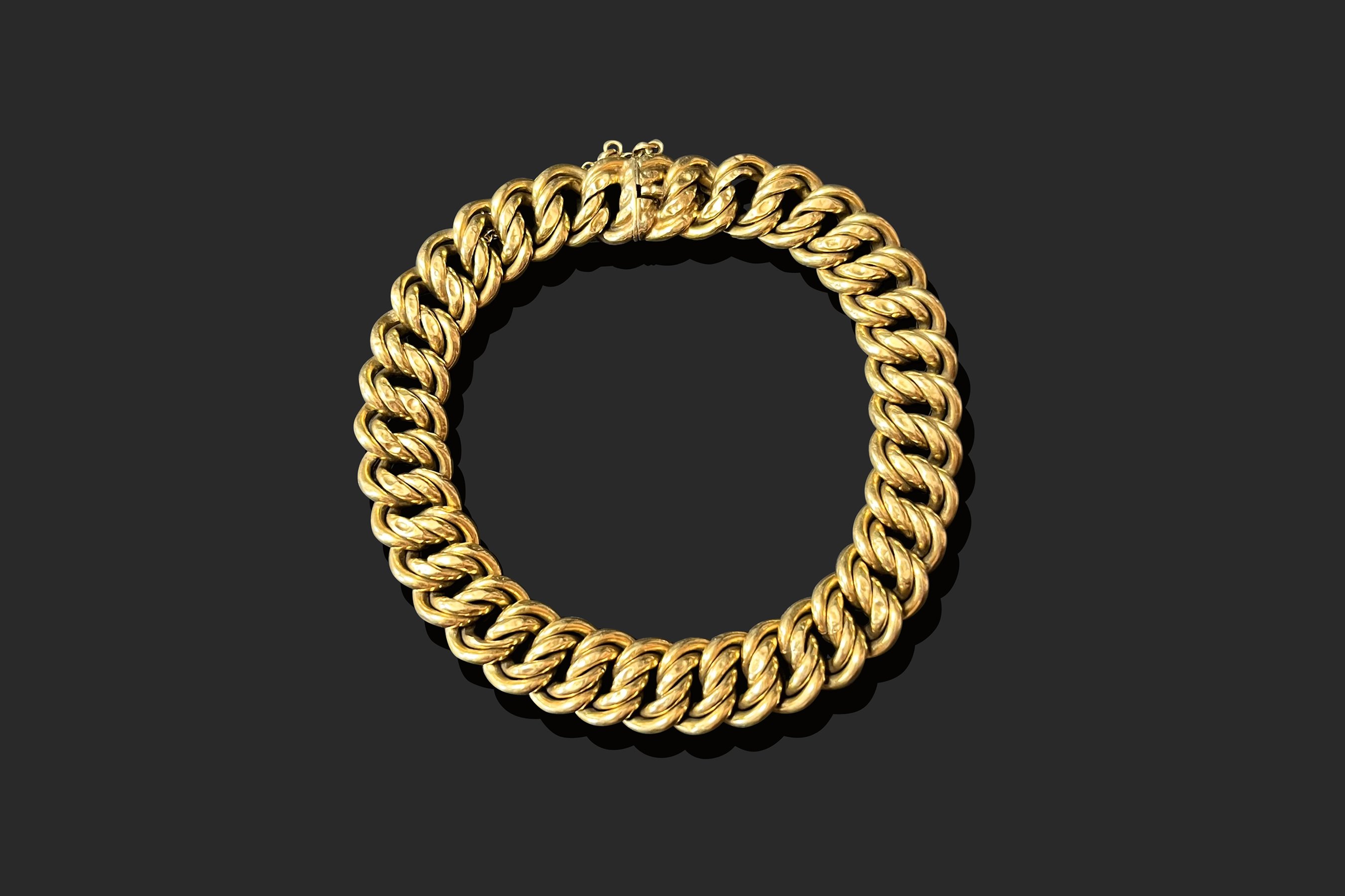 articulé en or jaune 750 millièmes, les maillons doubles entrelacés.
