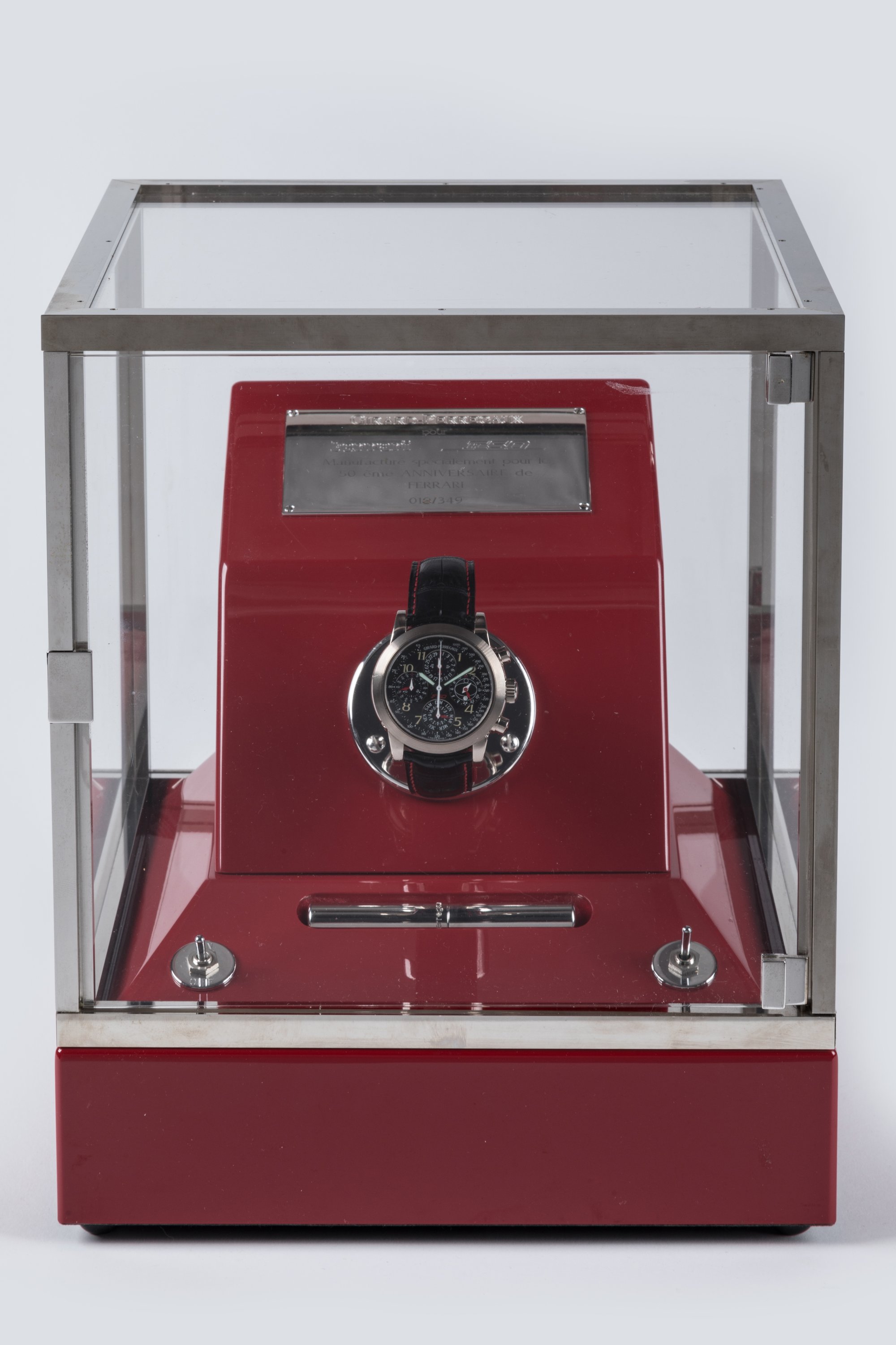 Fond signé, justifié et marqué "Manufacturé spécialement pour le 50e anniversaire de Ferrari". Mouvement mécanique à remontage automatique.