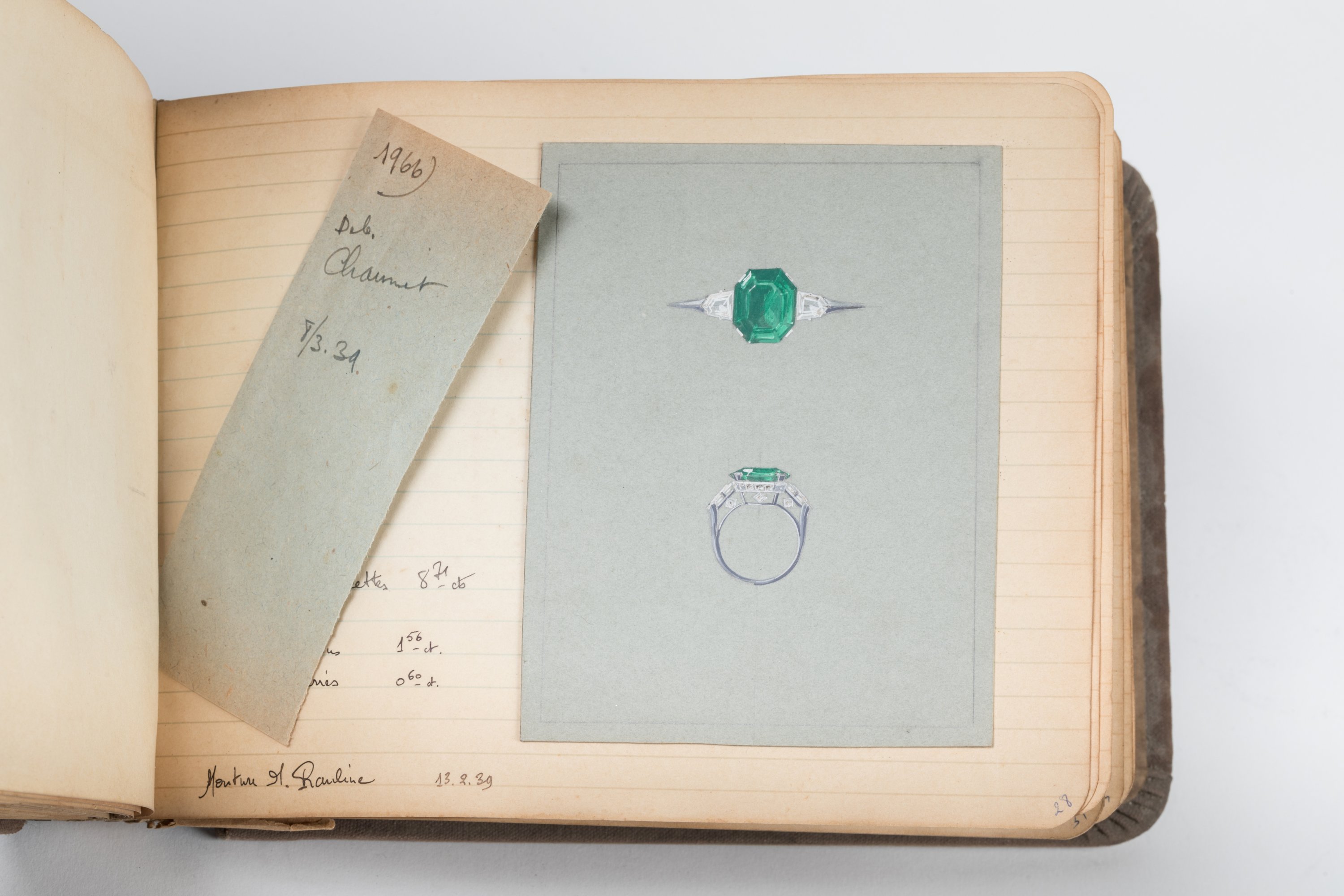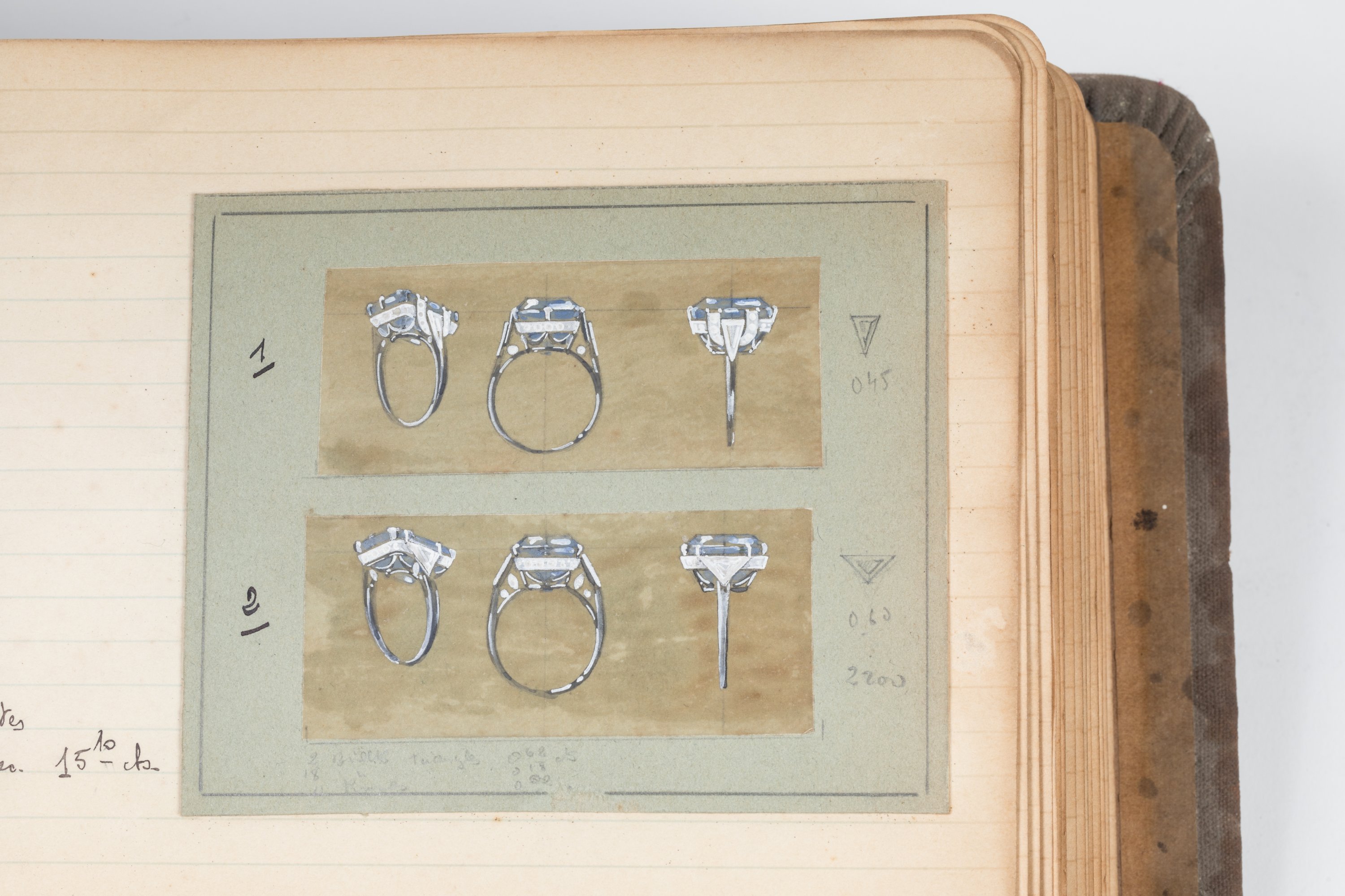 A Place Vendôme Workshop, 1932-1940. Two sketchbooks filled with jewellery sketches and lists of stones to be used as well as names of jewellers and clients.