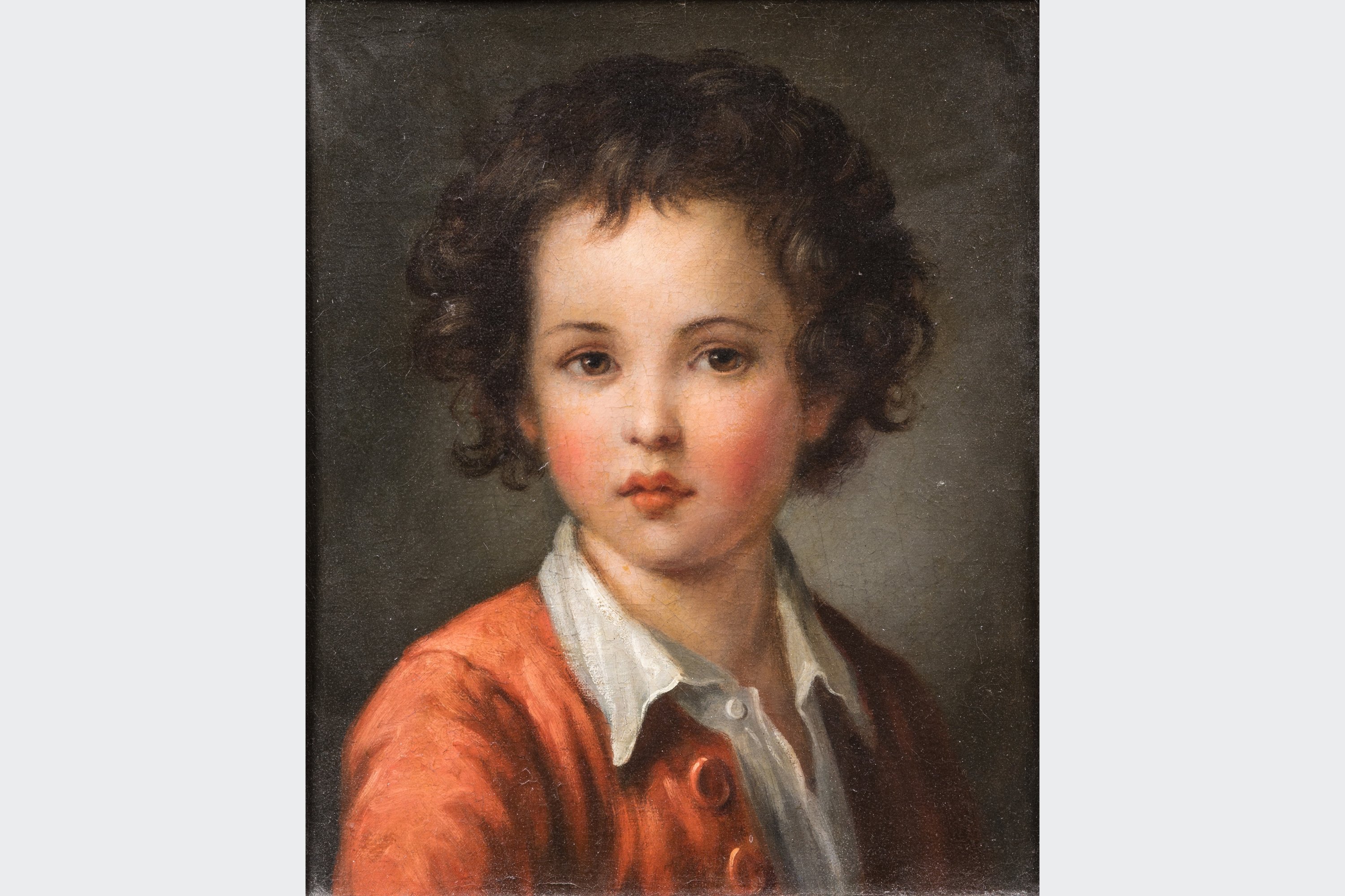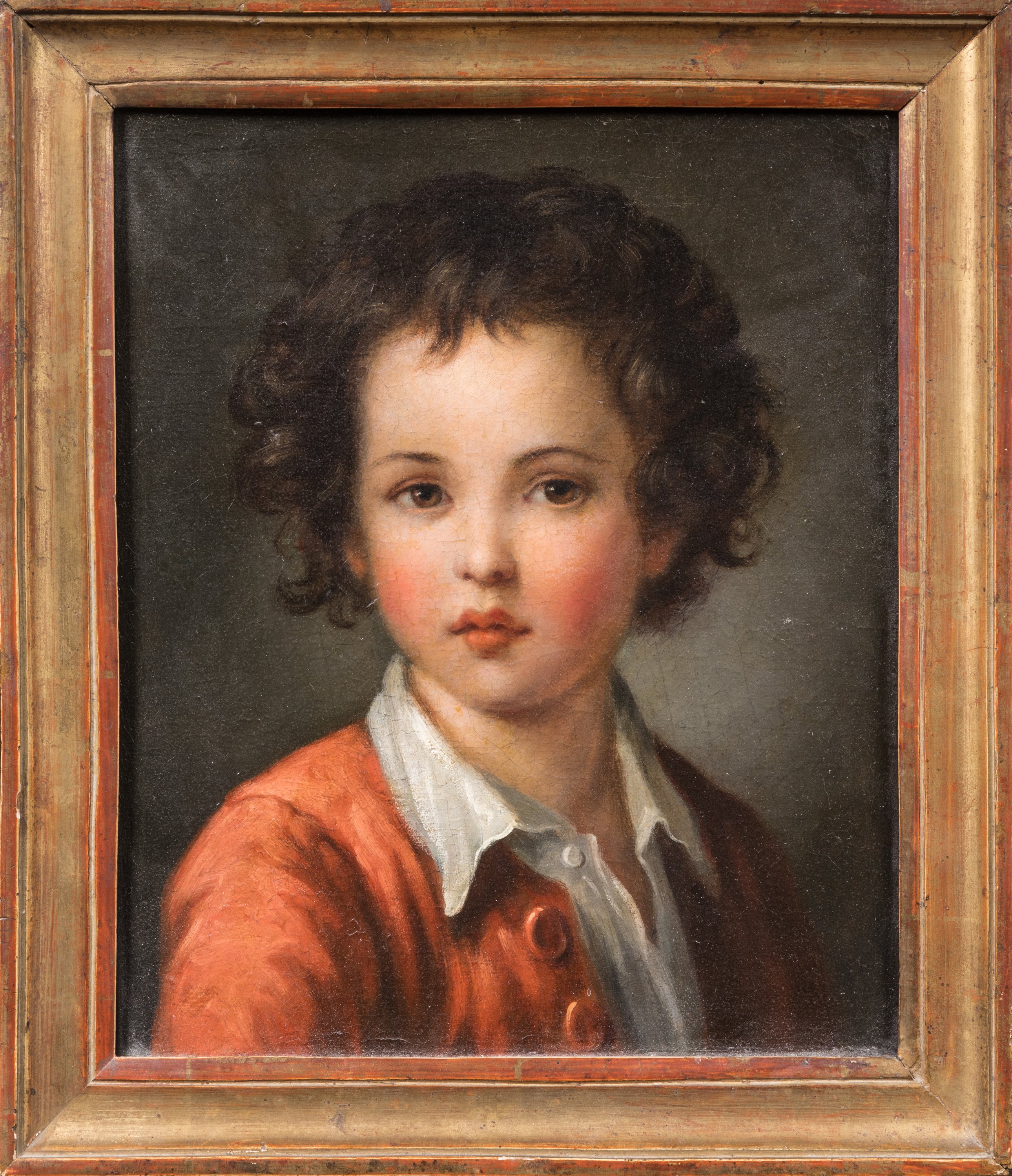 French, 18th C. In the manner of Catherine Lusurier. A portrait of a young boy. Formerly attributed to Gros. In a giltwood frame.