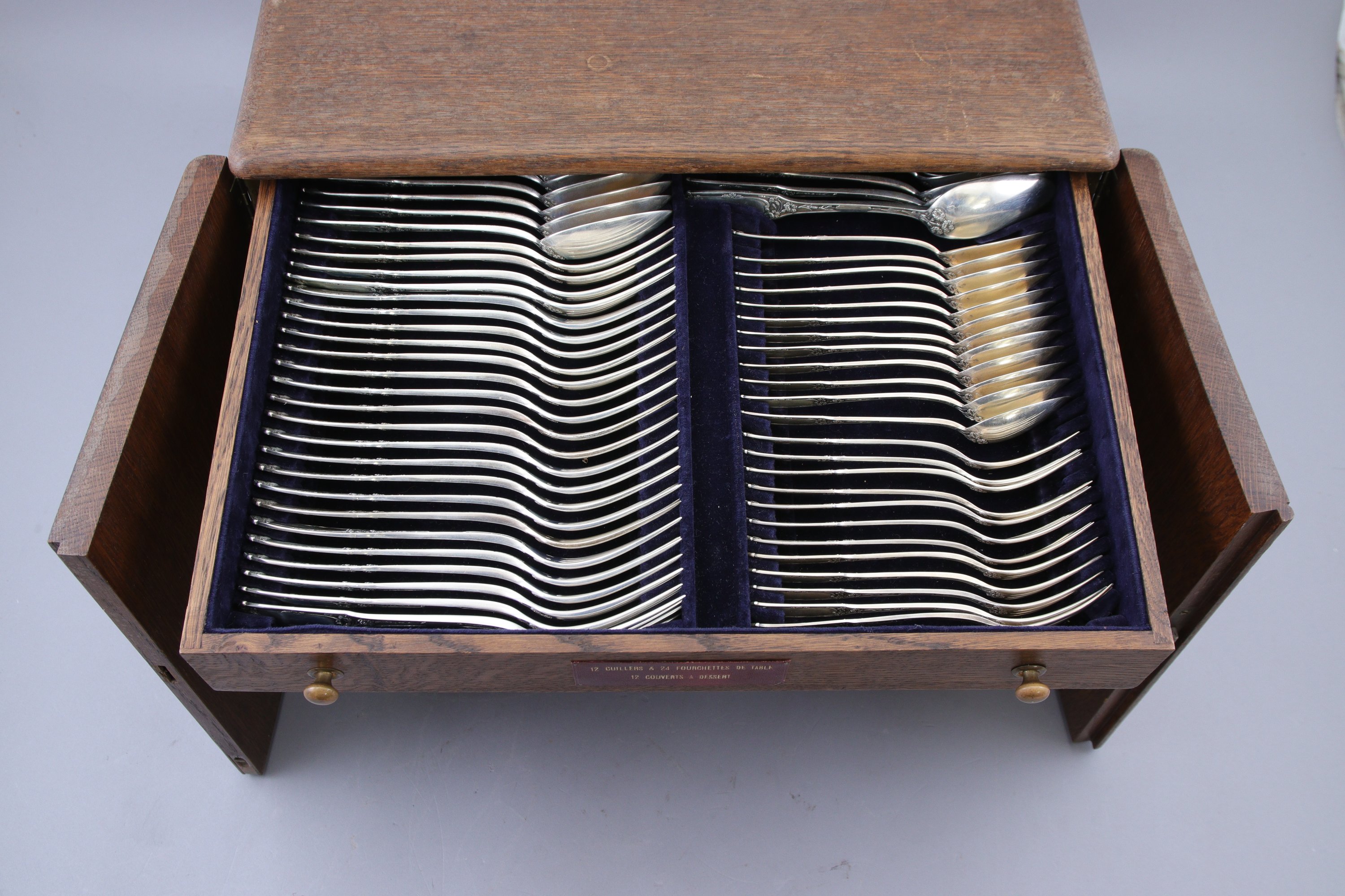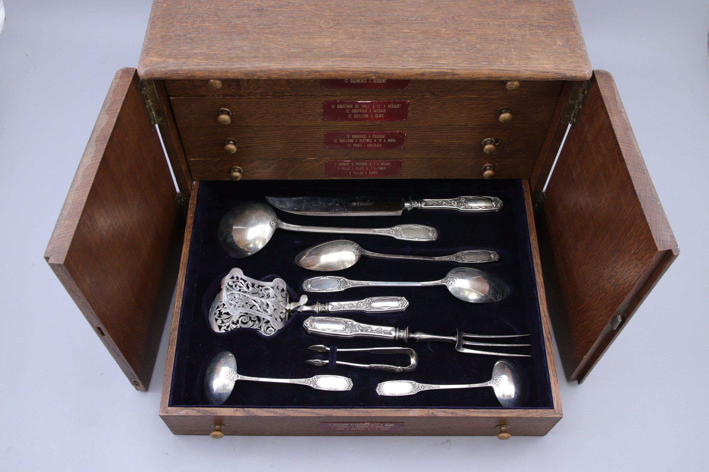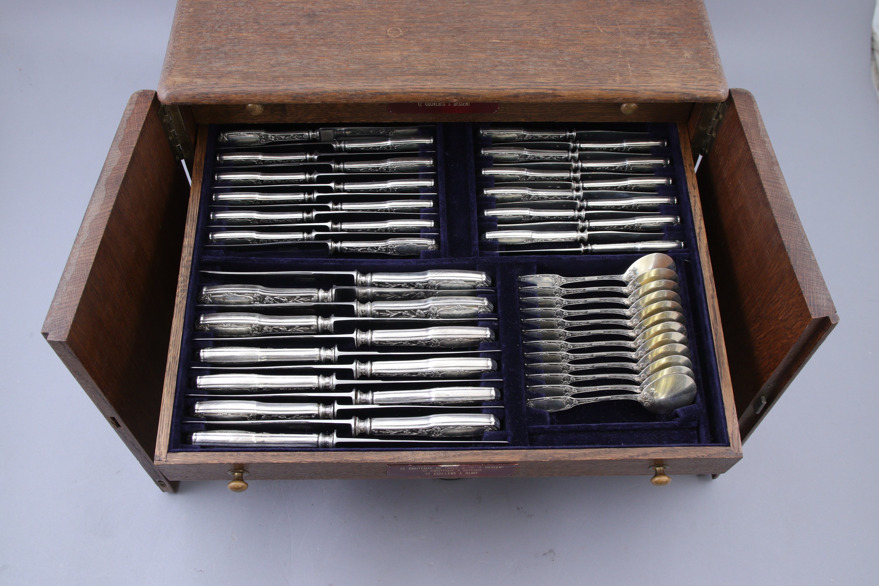 Alphonse Debain, ca. 1900. A 170-piece set of sterling silver cutlery. In its wooden storage canteen.