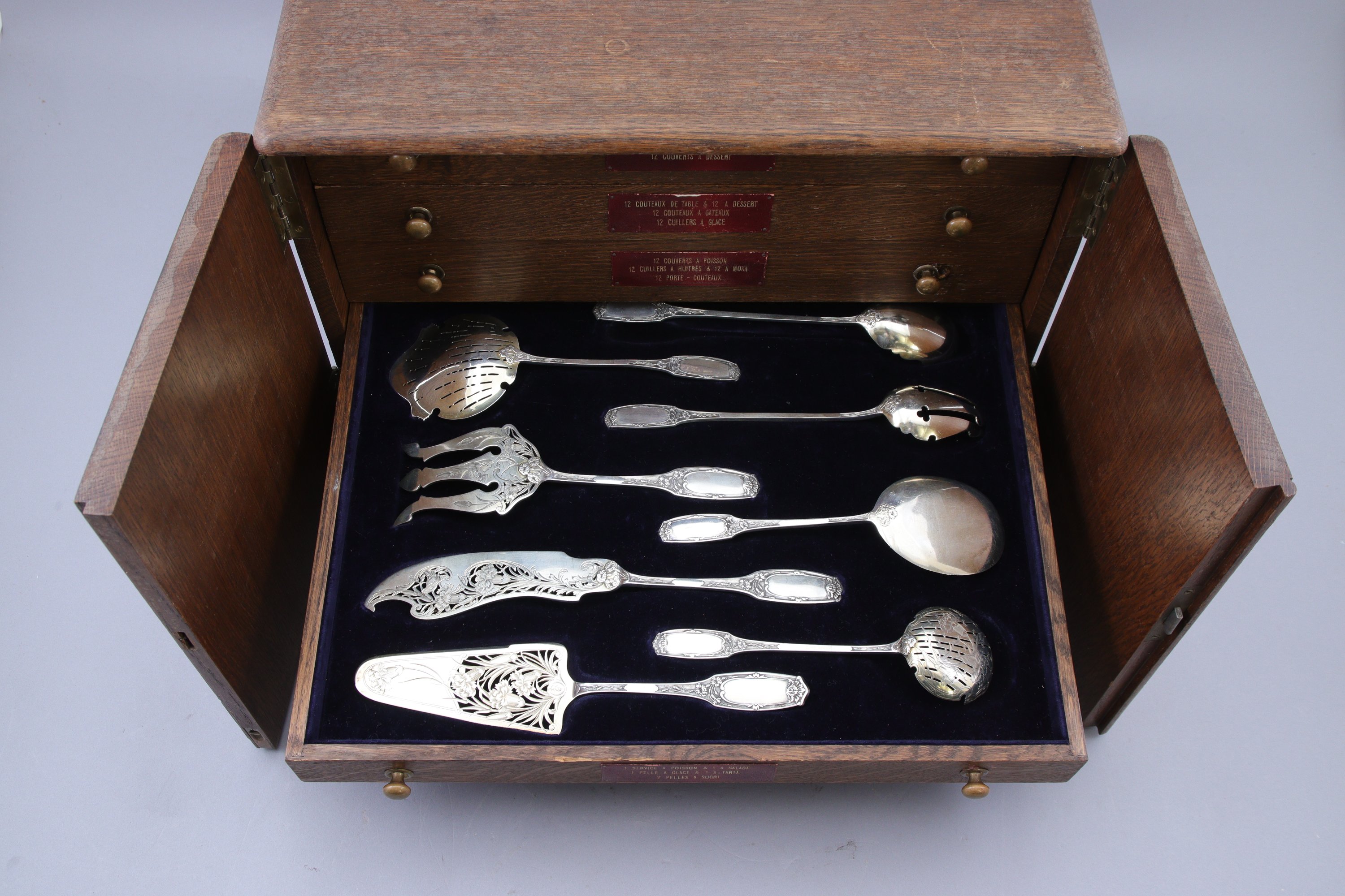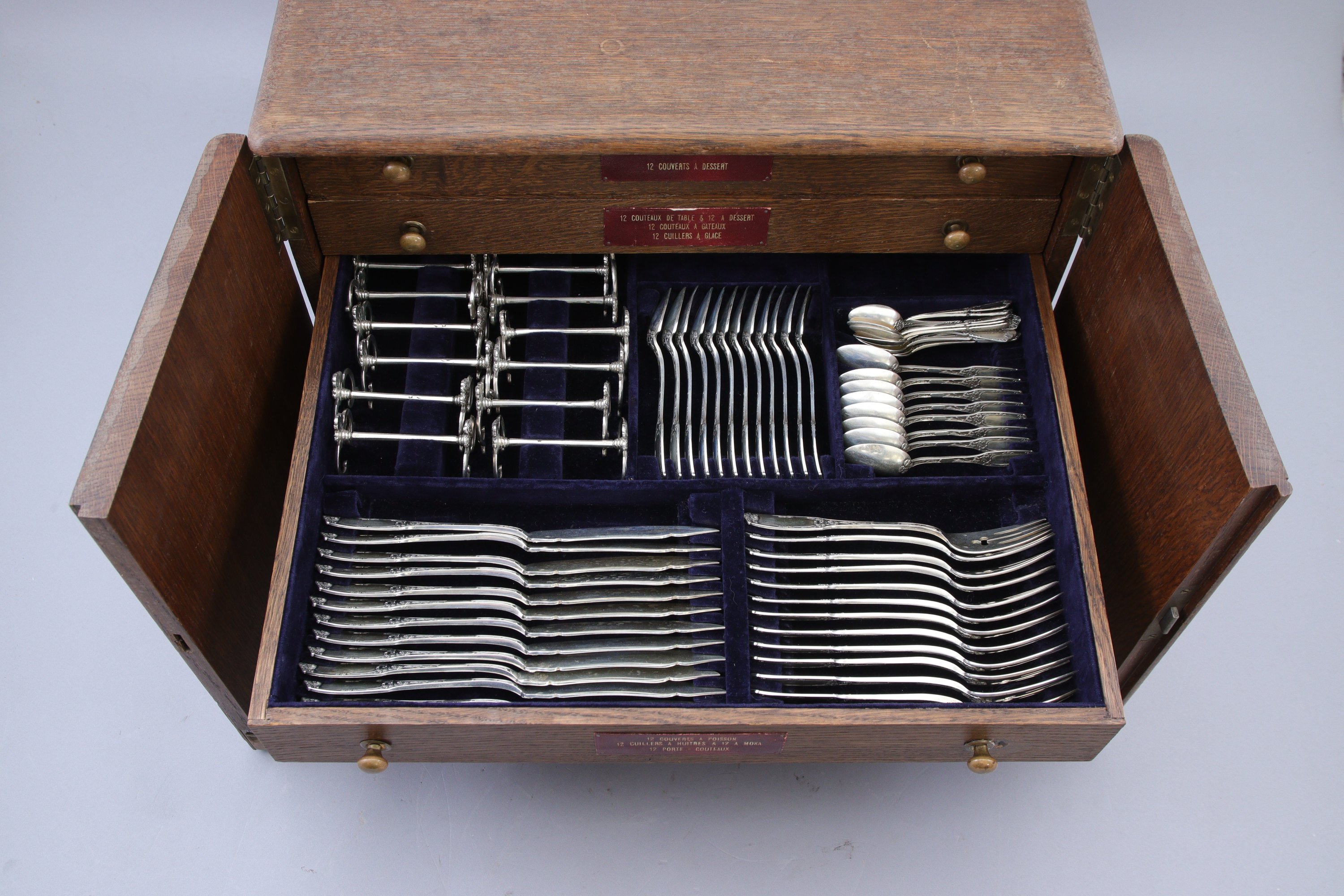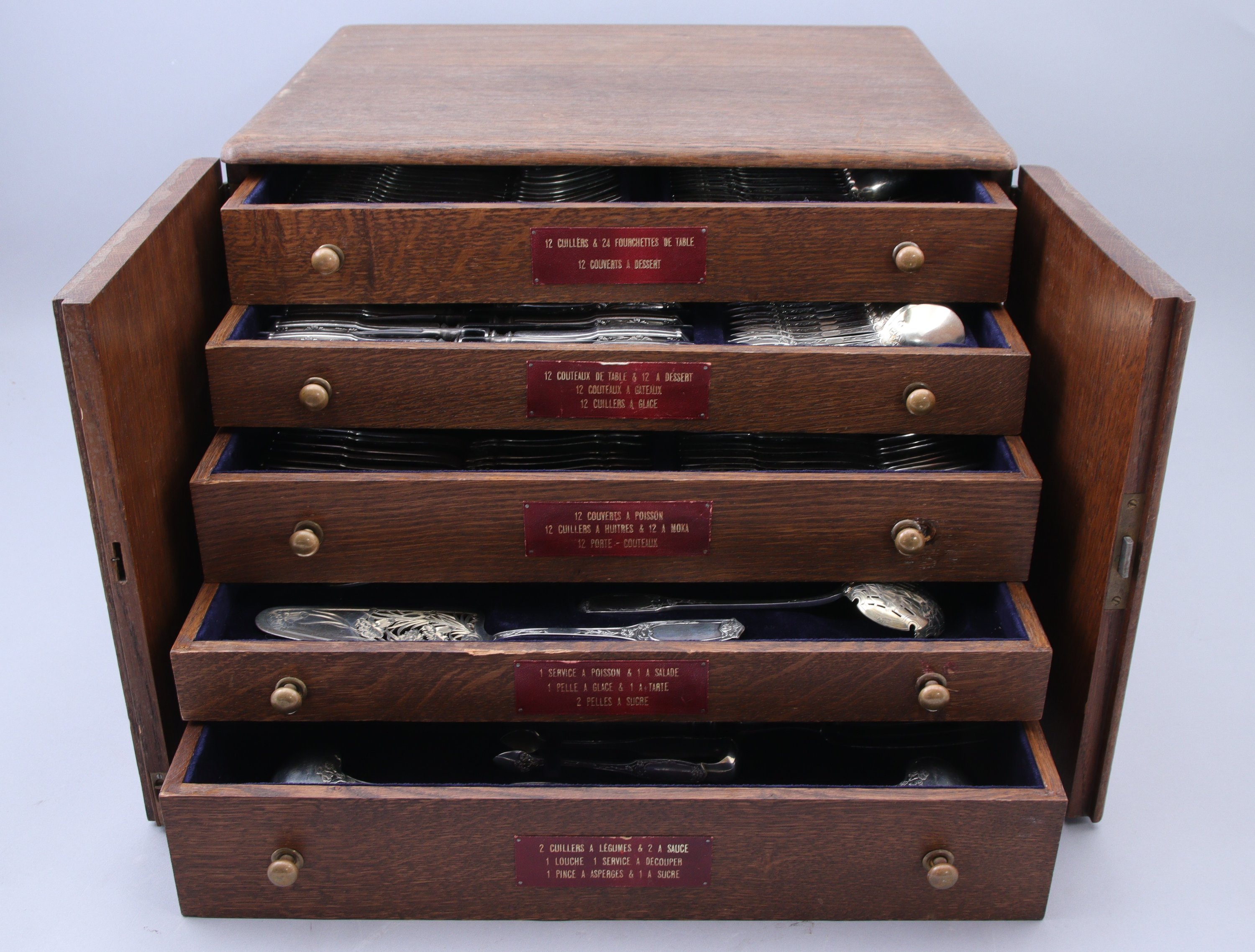 Alphonse Debain, ca. 1900. A 170-piece set of sterling silver cutlery. In its wooden storage canteen.