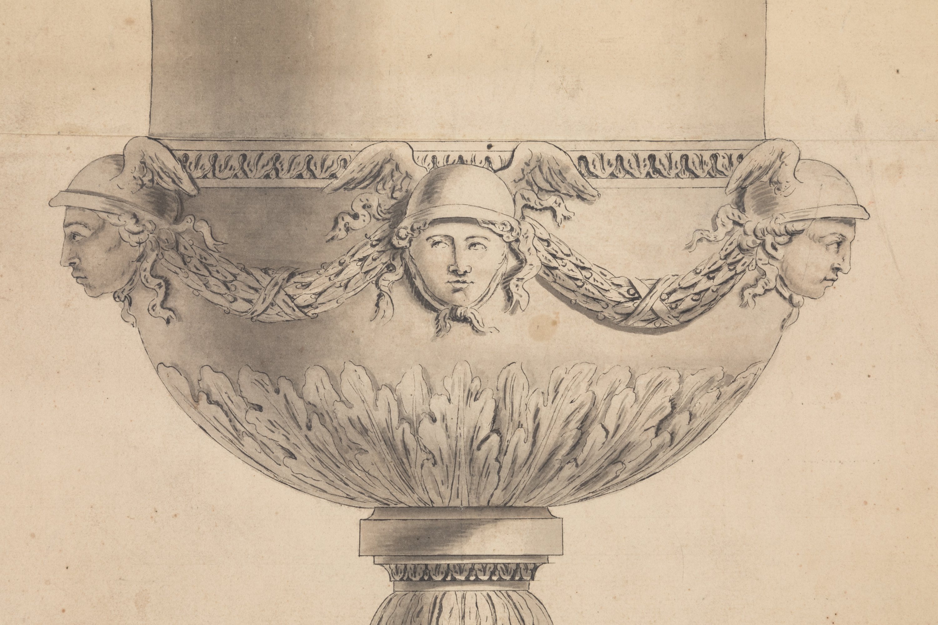 Atelier Odiot. An ink and wash drawing of a large vase. From the Maison Odiot collections.