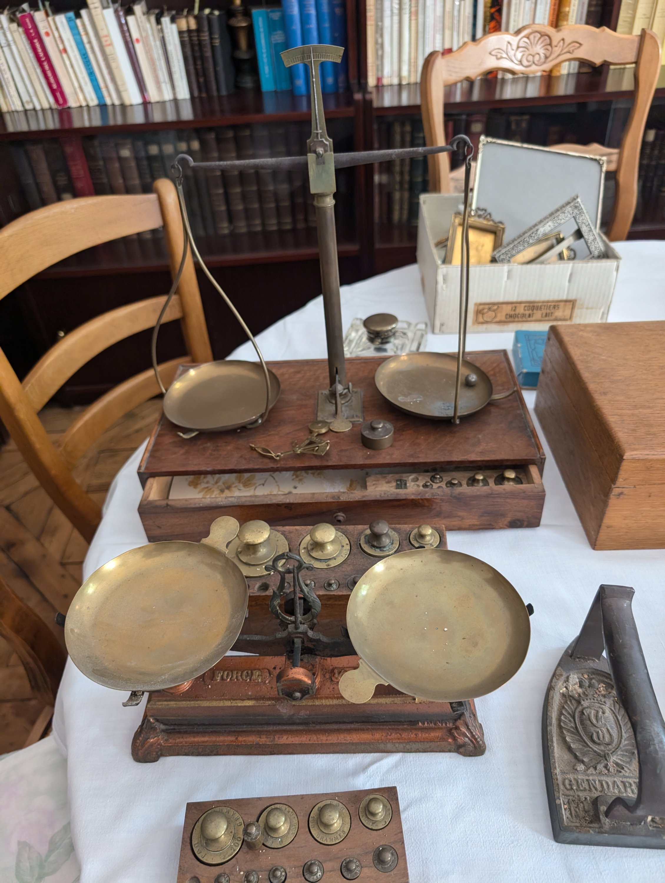 Contenu des greniers de la maison mère de la congrégation des soeurs du Bon Secours : vases d'autel, crucifix, lampes à pétrole, cadres, machine à tuyauter les coiffes, etc.