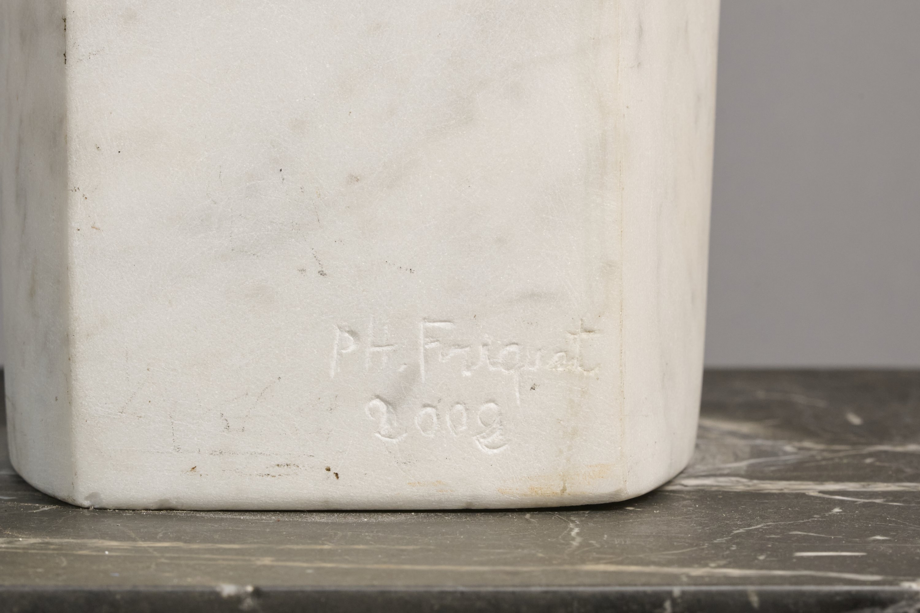 Sur un socle rectangulaire en marbre gris veiné (Haut. 3 Larg. 35 Prof. 30 cm).