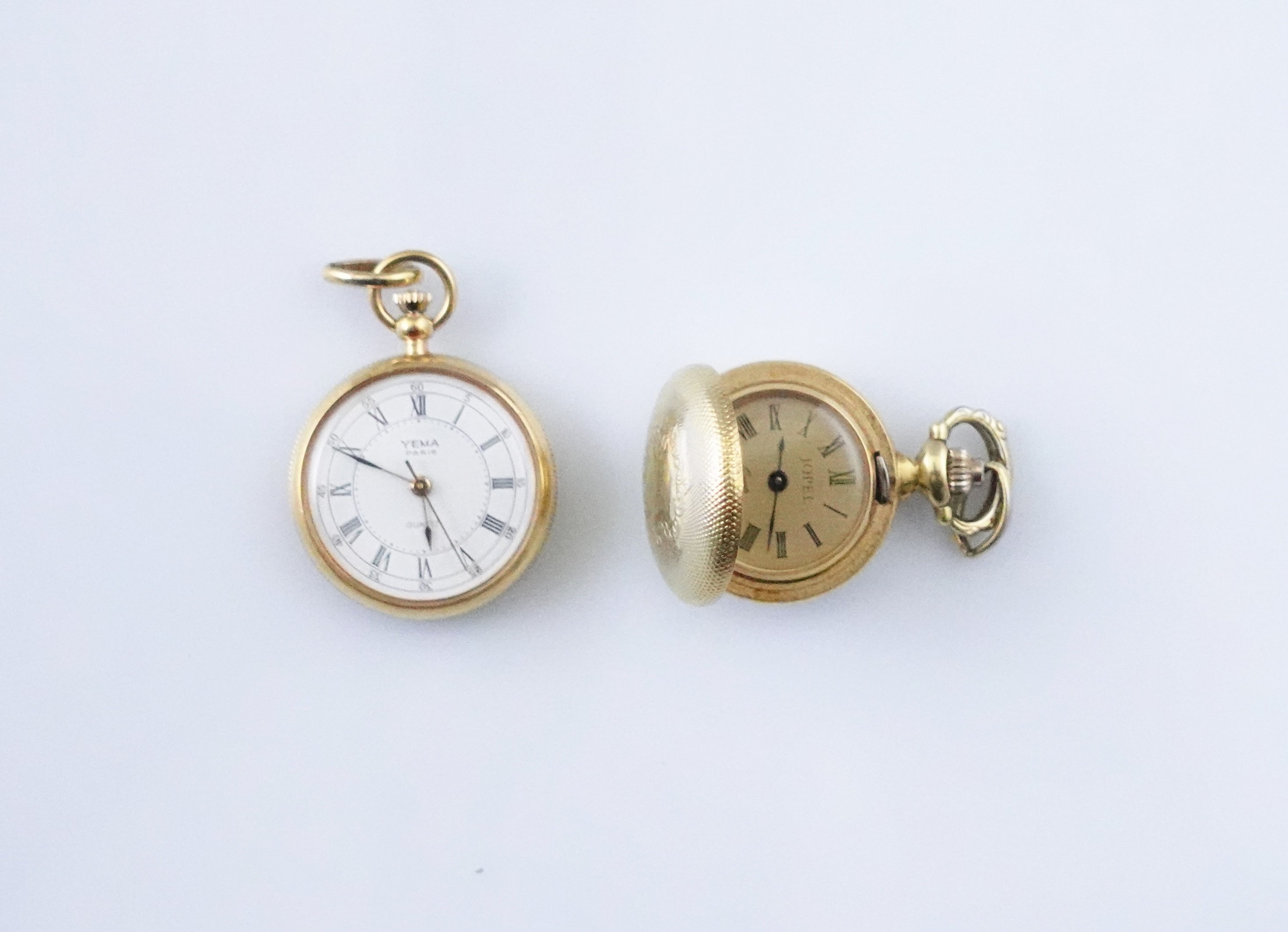 Joints : Deux montres de col en métal doré.