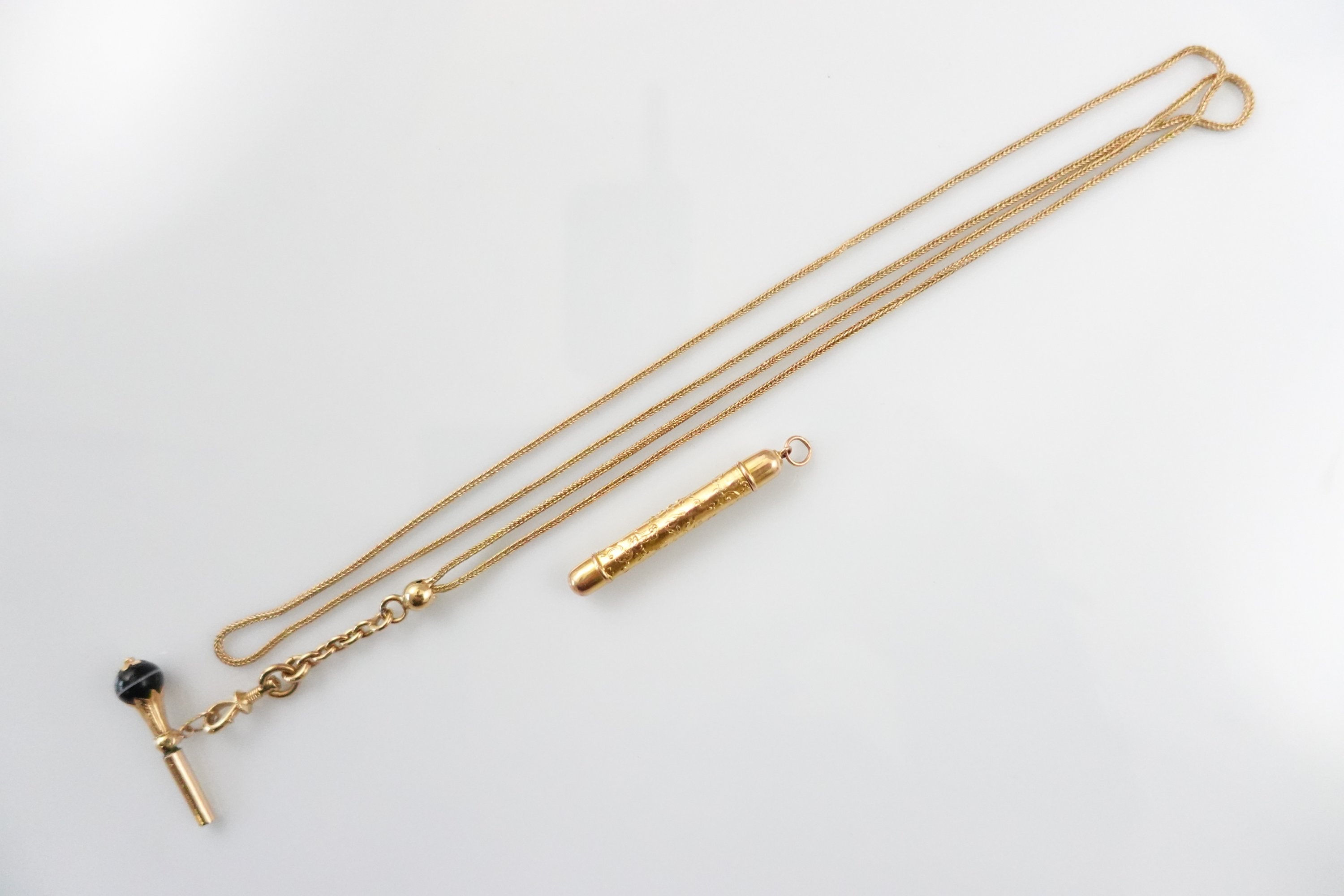 Joint : un porte-mine en or jaune 750 millièmes à décor d'un cartouche en agrafe dans un entourage végétal. Poids brut : 5 g.