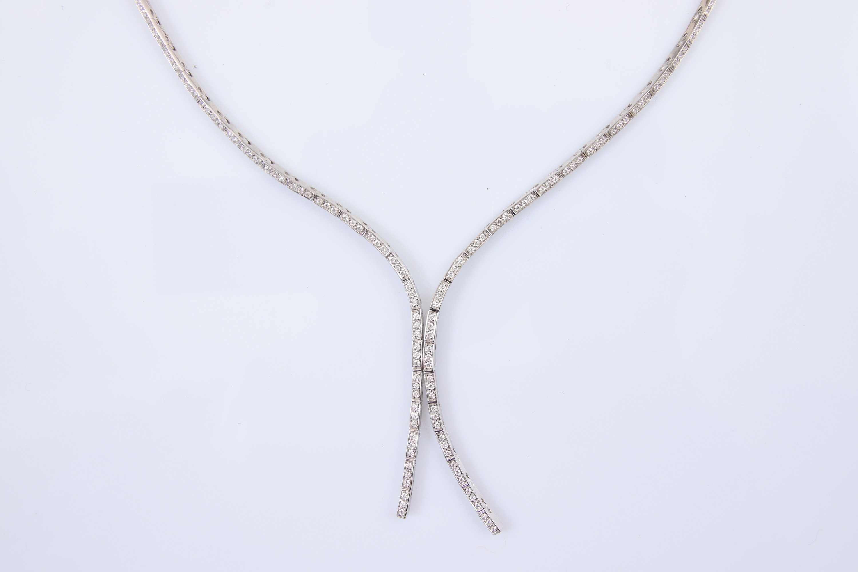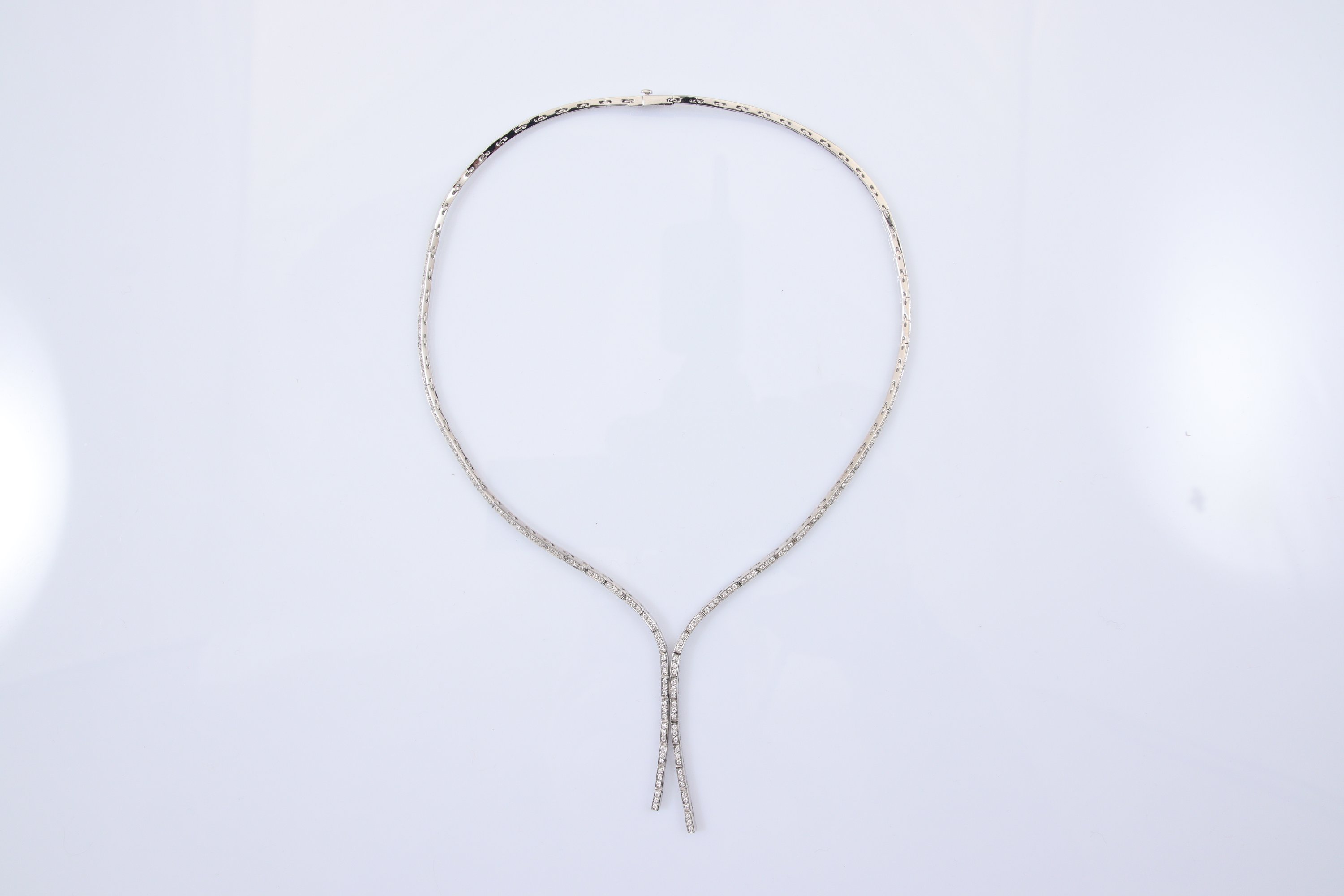 en or gris 750 millièmes, serti de diamants ronds en ligne.