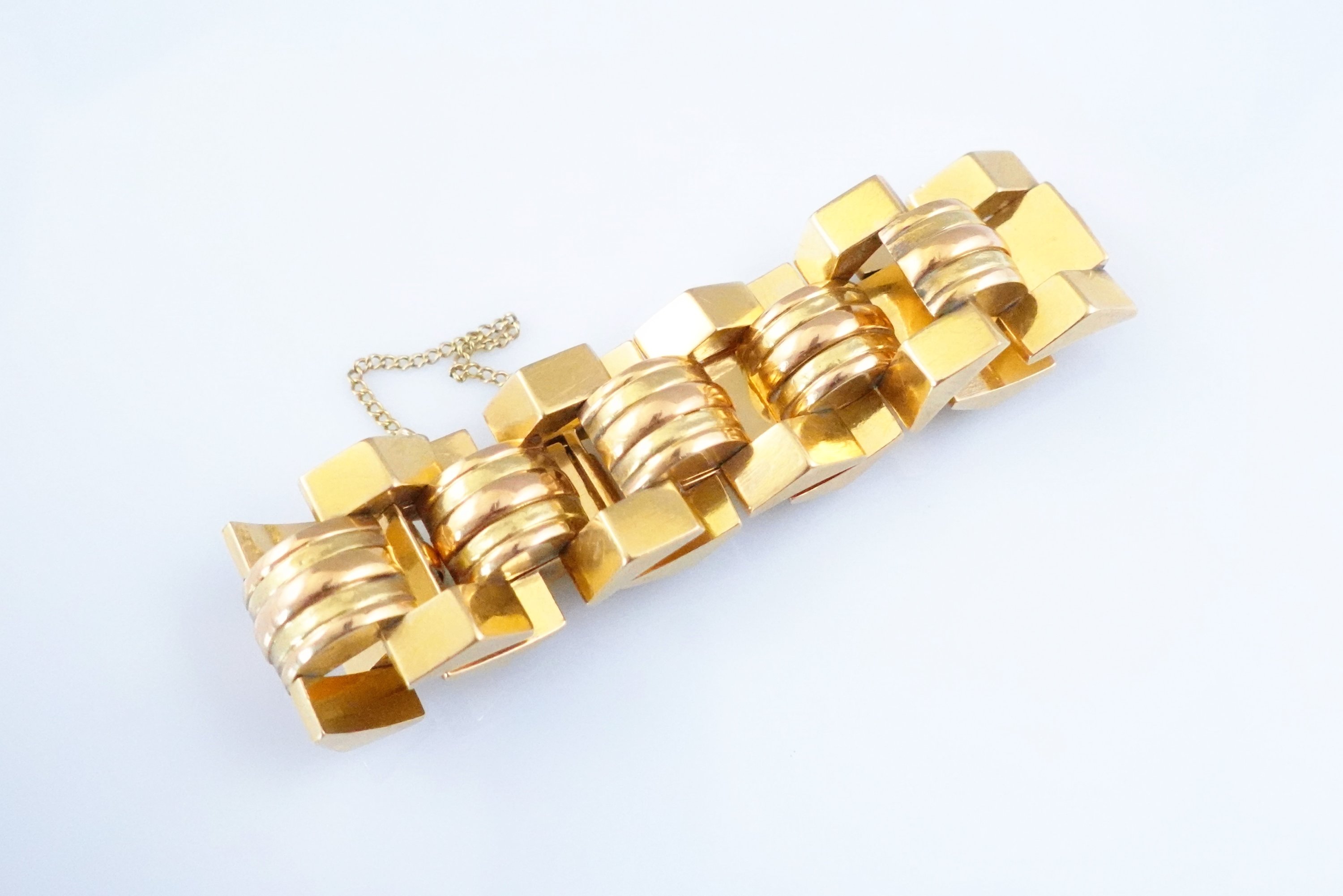 en or 750 millièmes plusieurs tons, jaune, vert et rose. Chaînette de sécurité.