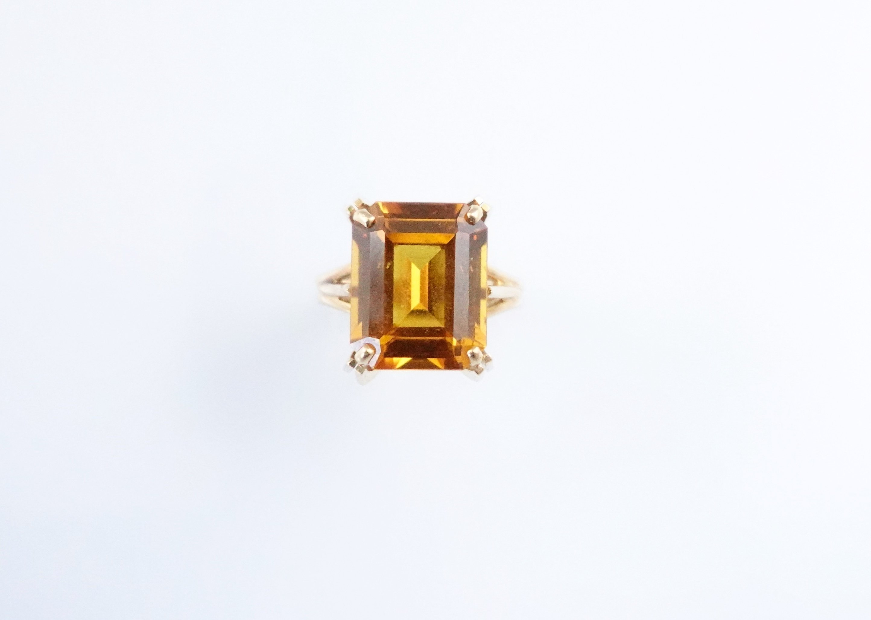 en or jaune 750 millièmes sertie en griffes d'une citrine en taille émeraude.