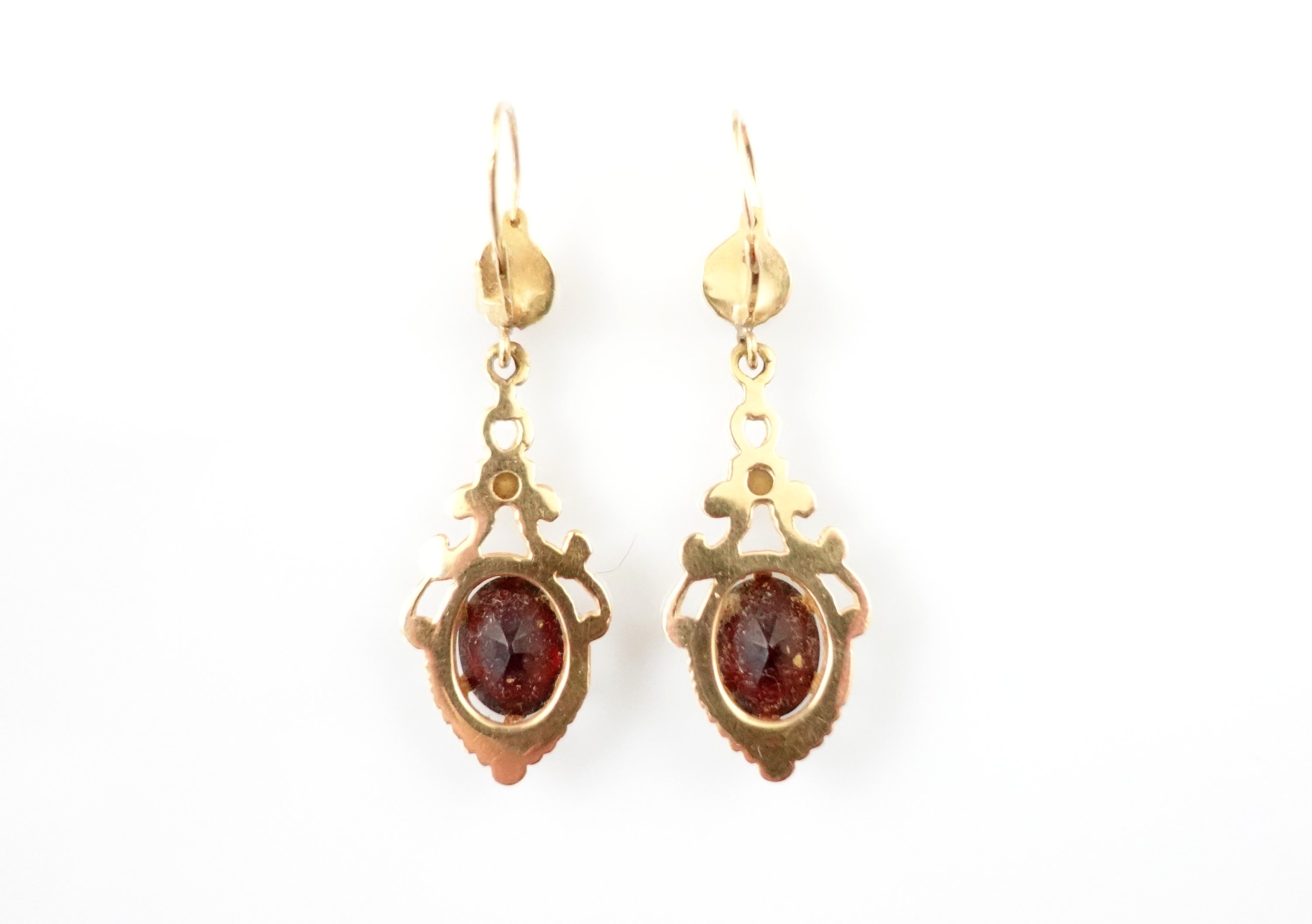 en or jaune 750 millièmes serties de perles et grenat (?).