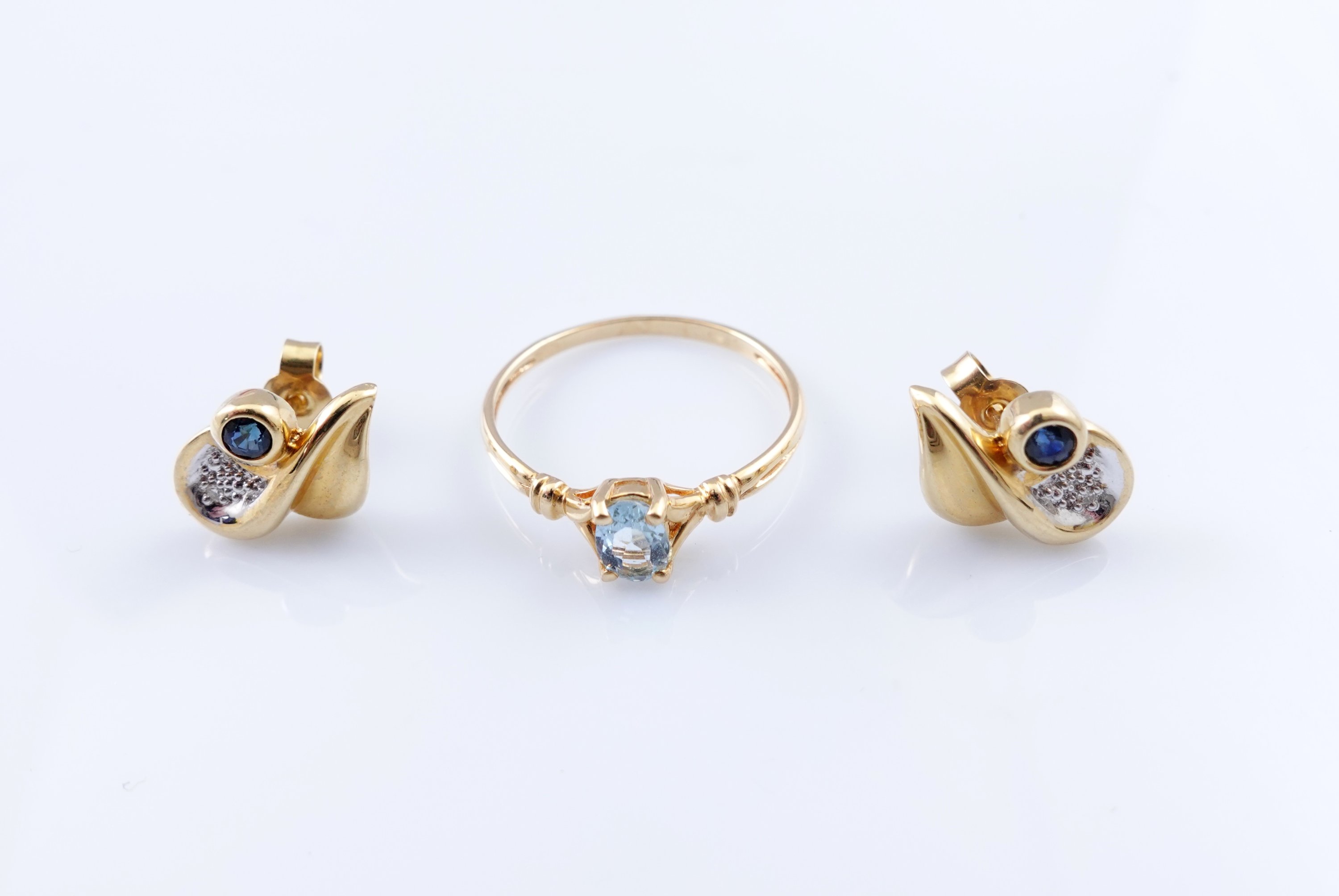 Les boucles d'oreilles pour oreilles percées ornées de pierres bleues.