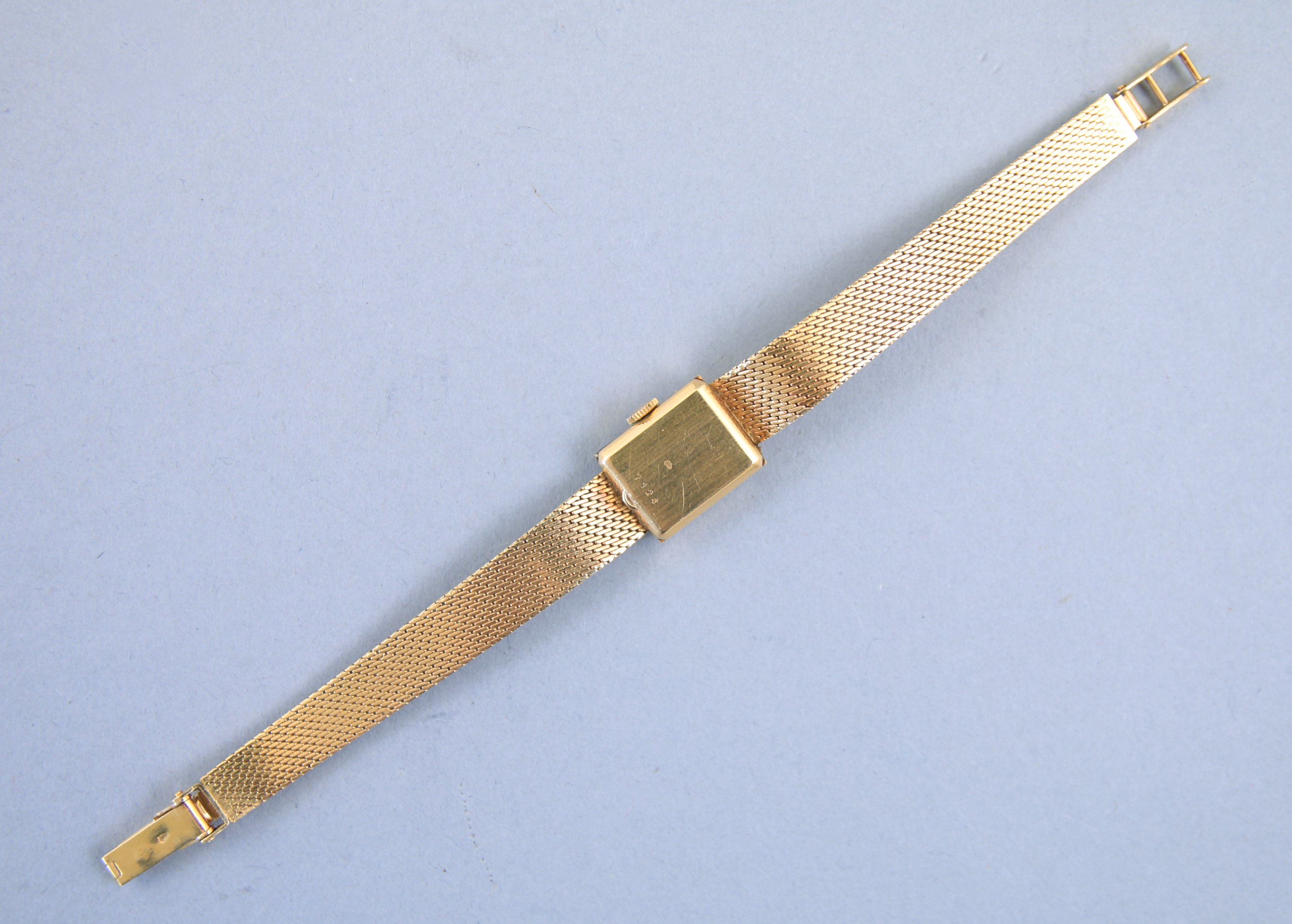 en or jaune 750 millièmes. Le boitier de forme quadrangulaire, le cadran signé UTI indiquant les heures par des bâtonnets et points. Remontoir à trois heures. Numérotée "7124".