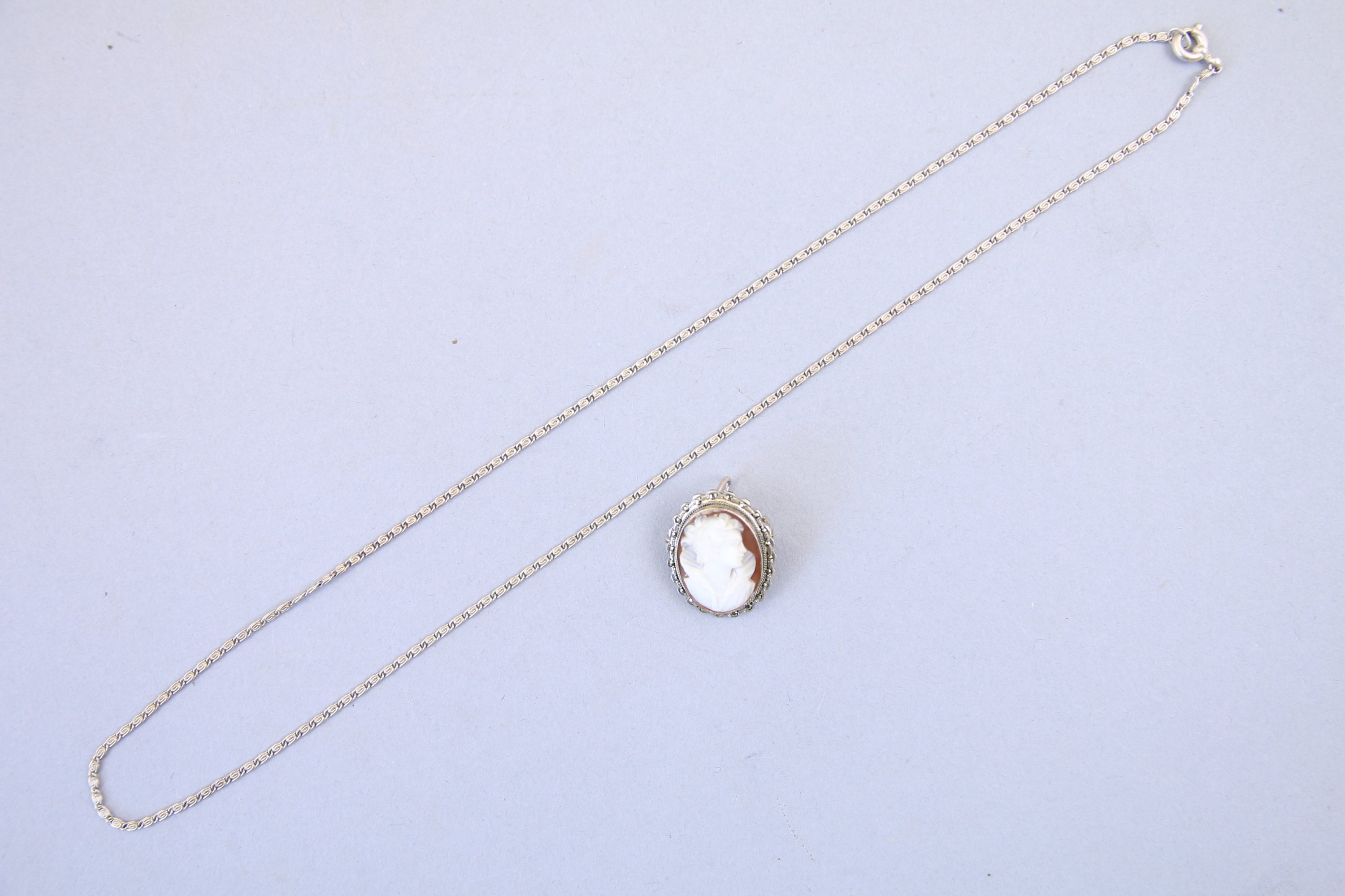 en argent 800 millièmes sertie de pierres du Rhin entourant un camée pierre à décor d'un profil de femme à la colerette.