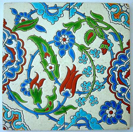 METTLACH. Entrelacs de fleurs, style anatolien, marque VILLEROY & BOCH MOSAIKFABRIK IN METTLACH, 205 x 205 mm.