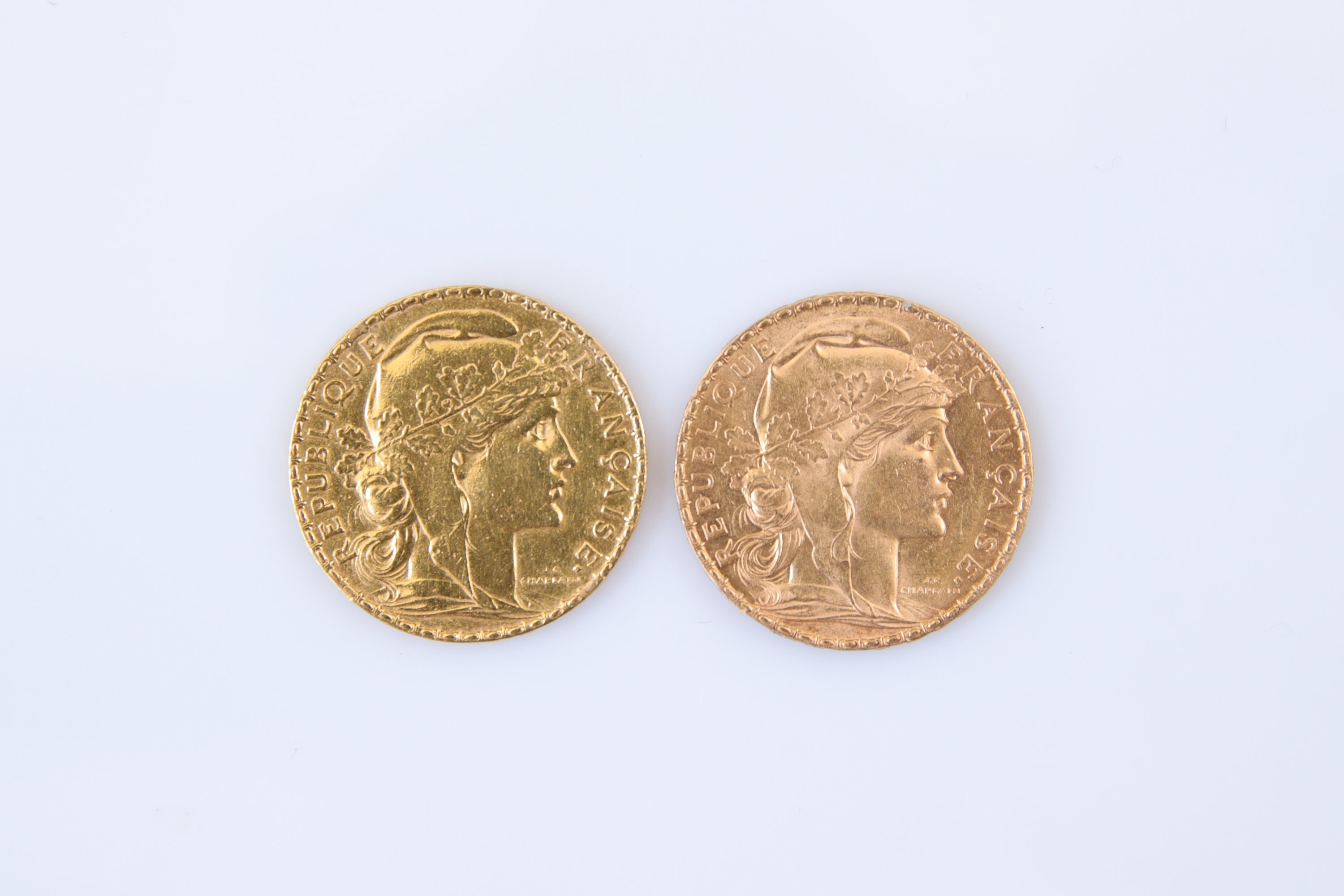 FRANCE. 2 PIECES de 20 FRANCS OR, 1909 et 1912.