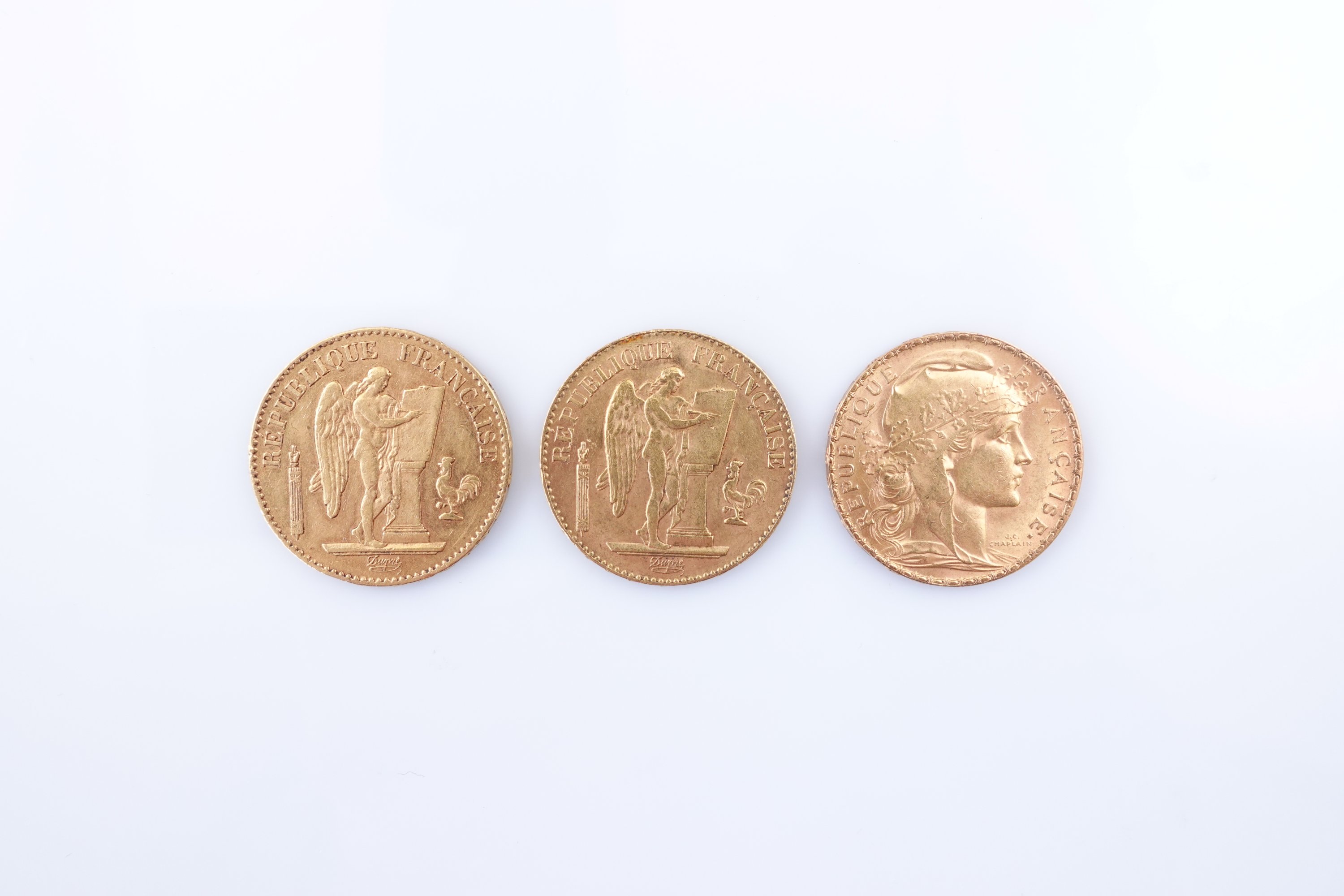 FRANCE. 3 PIECES de 20 FRANCS OR :