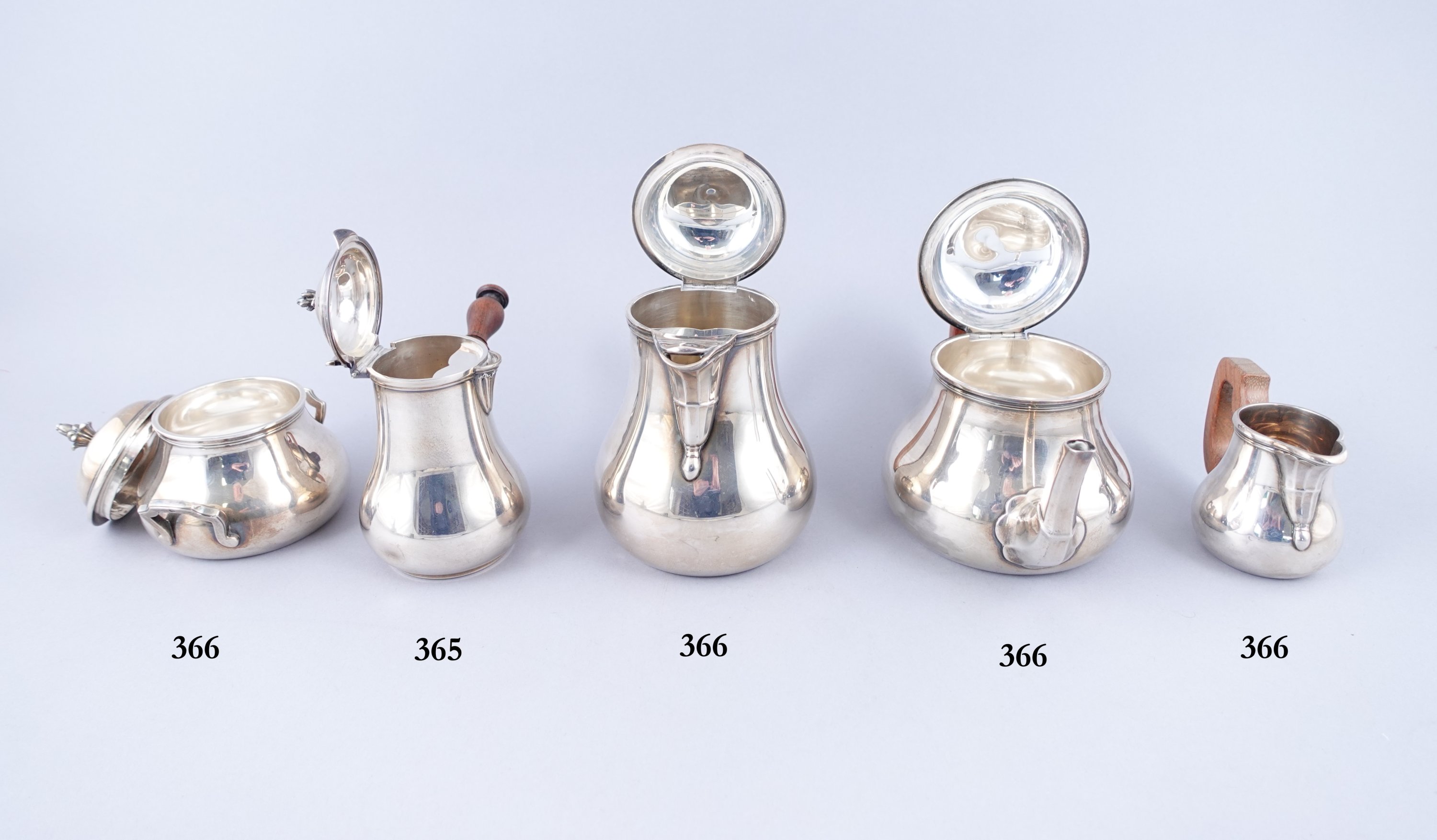 en argent à couvercle sommé d'un fretel de forme végétal. Anse en bois tourné.