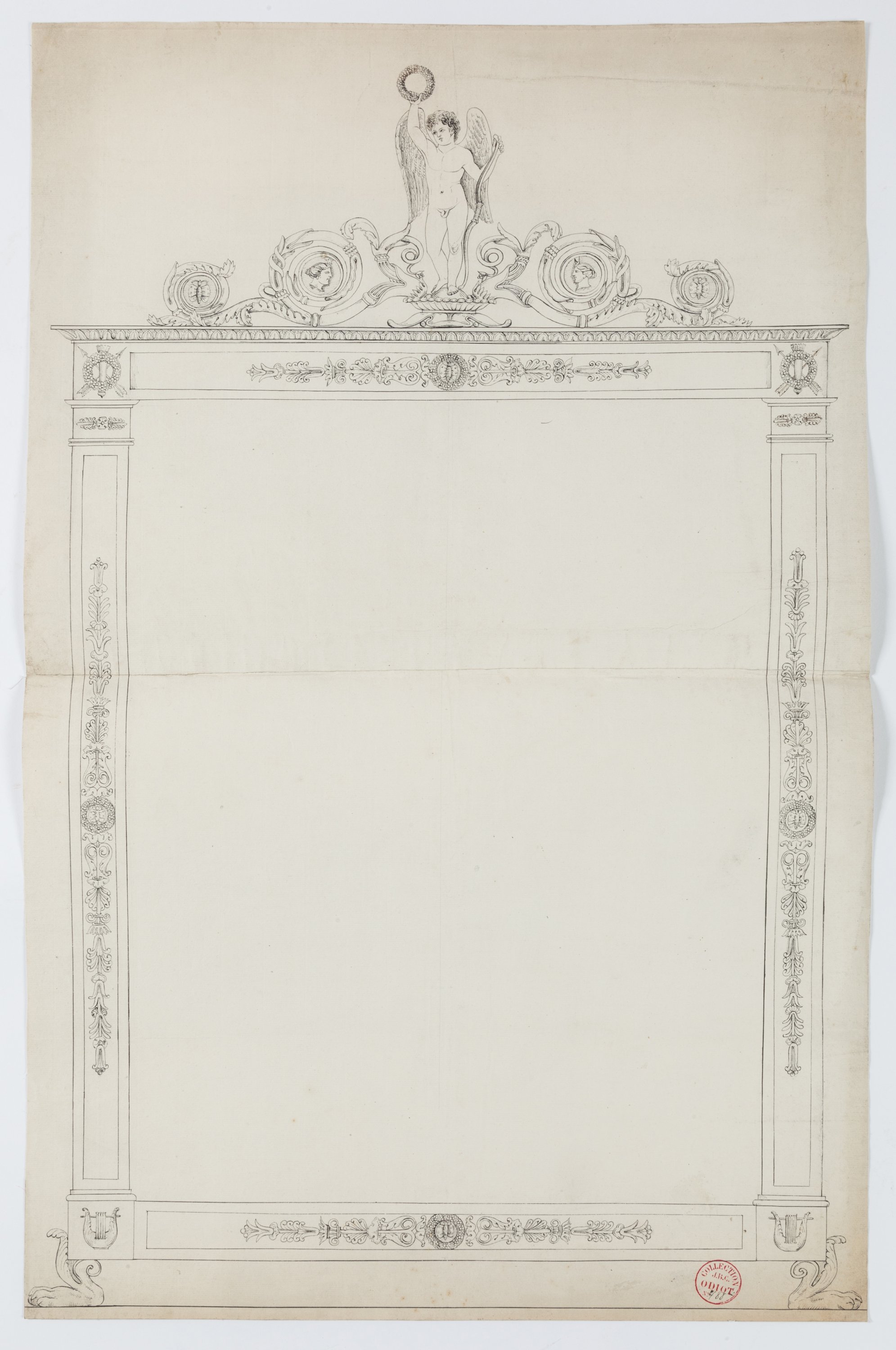 Ce dessin serait référencé dans les archives Odiot sous le numéro « 488bis » avec la désignation suivante : « Dessin au trait, en grandeur. Imparfait. Grande glace, sur griffes lions ; bandeau couronne cernant un aigle [ ?] culots et palmettes, montants lyres et même motif que le montant du bas. Fronton rinceau et médaillon, amour debout ».