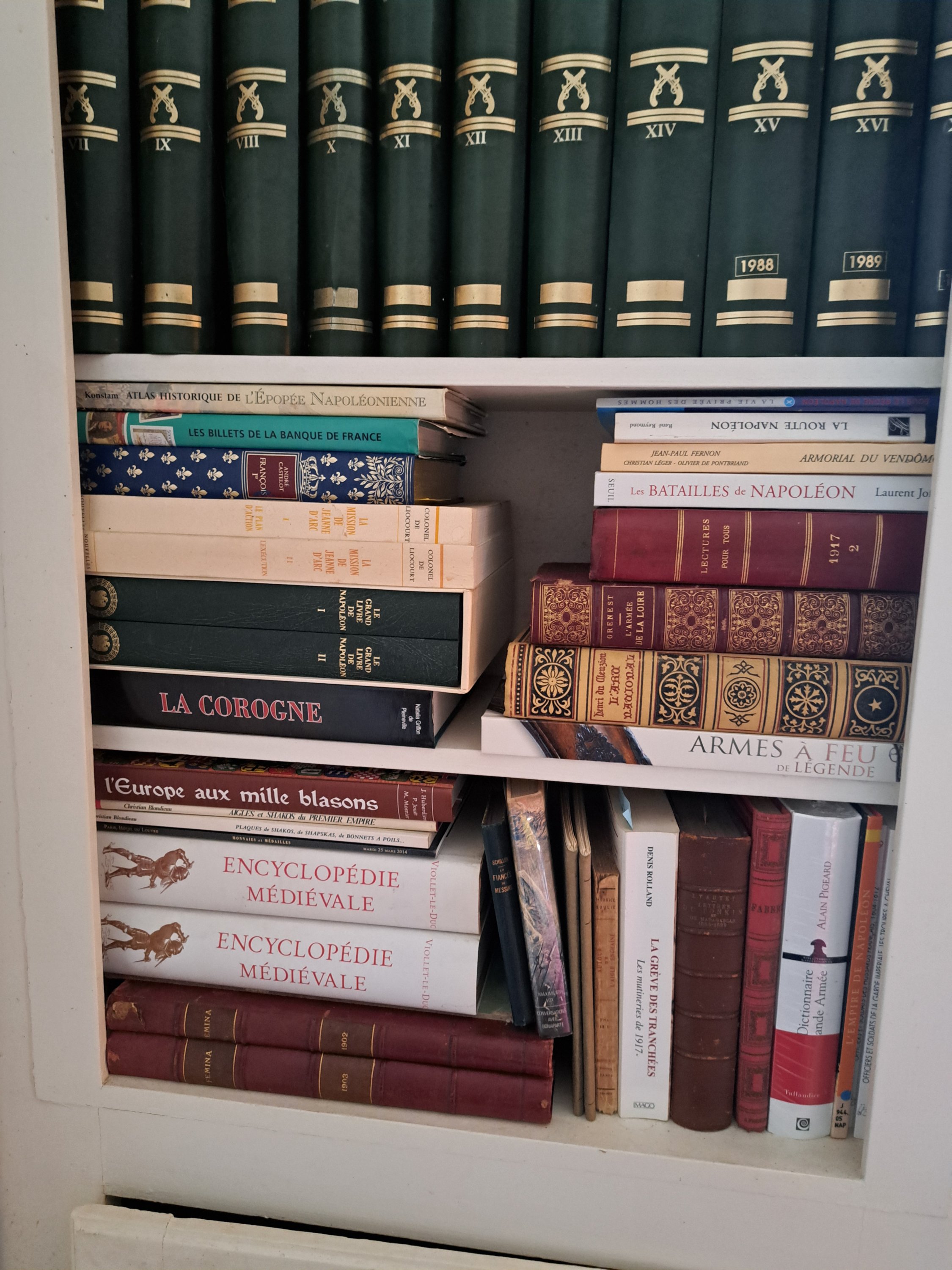 - Quatre bibliothèques de livres divers dont historique (Empire), armes, art, etc.