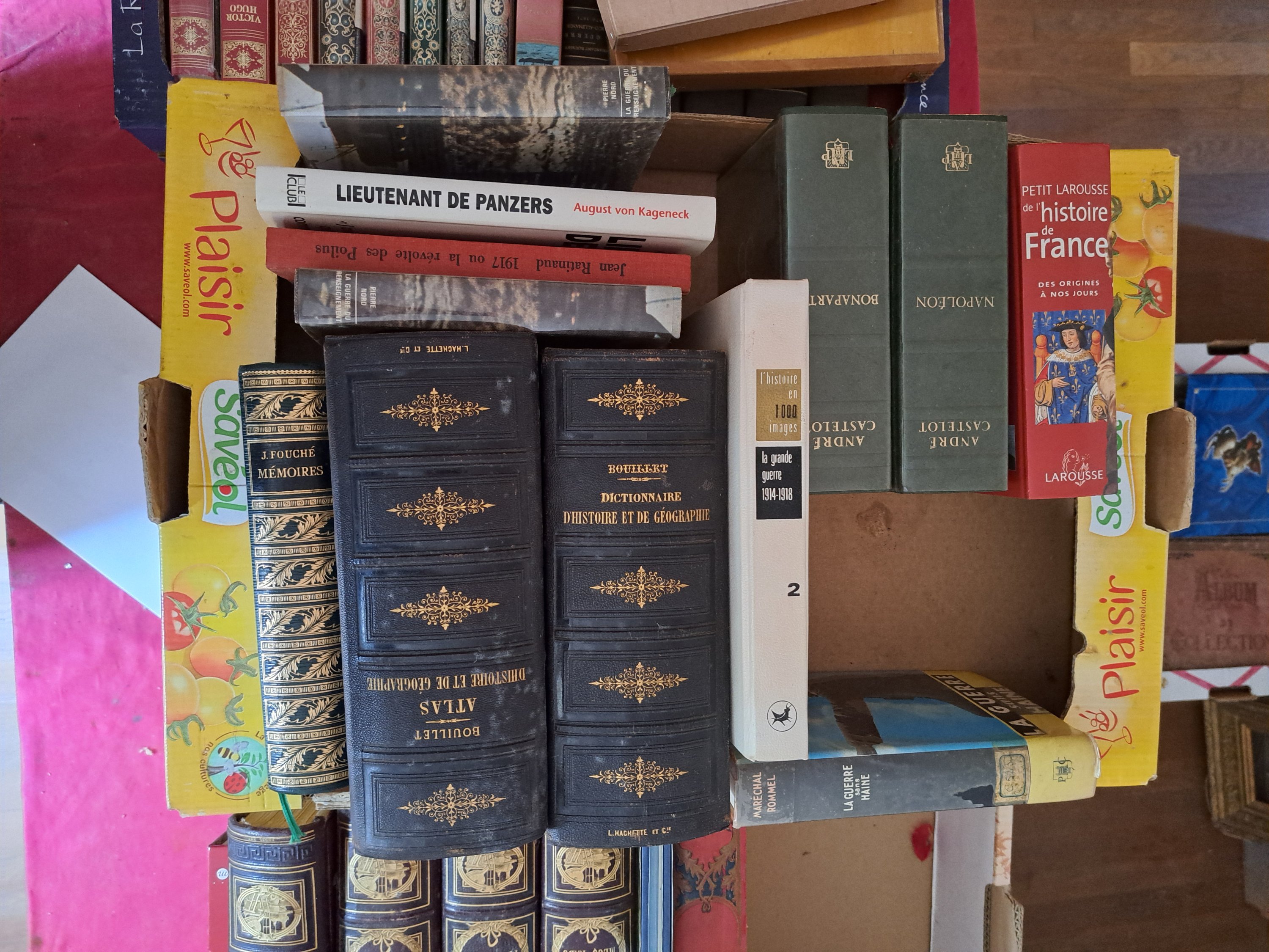 - Quatre bibliothèques de livres divers dont historique (Empire), armes, art, etc.