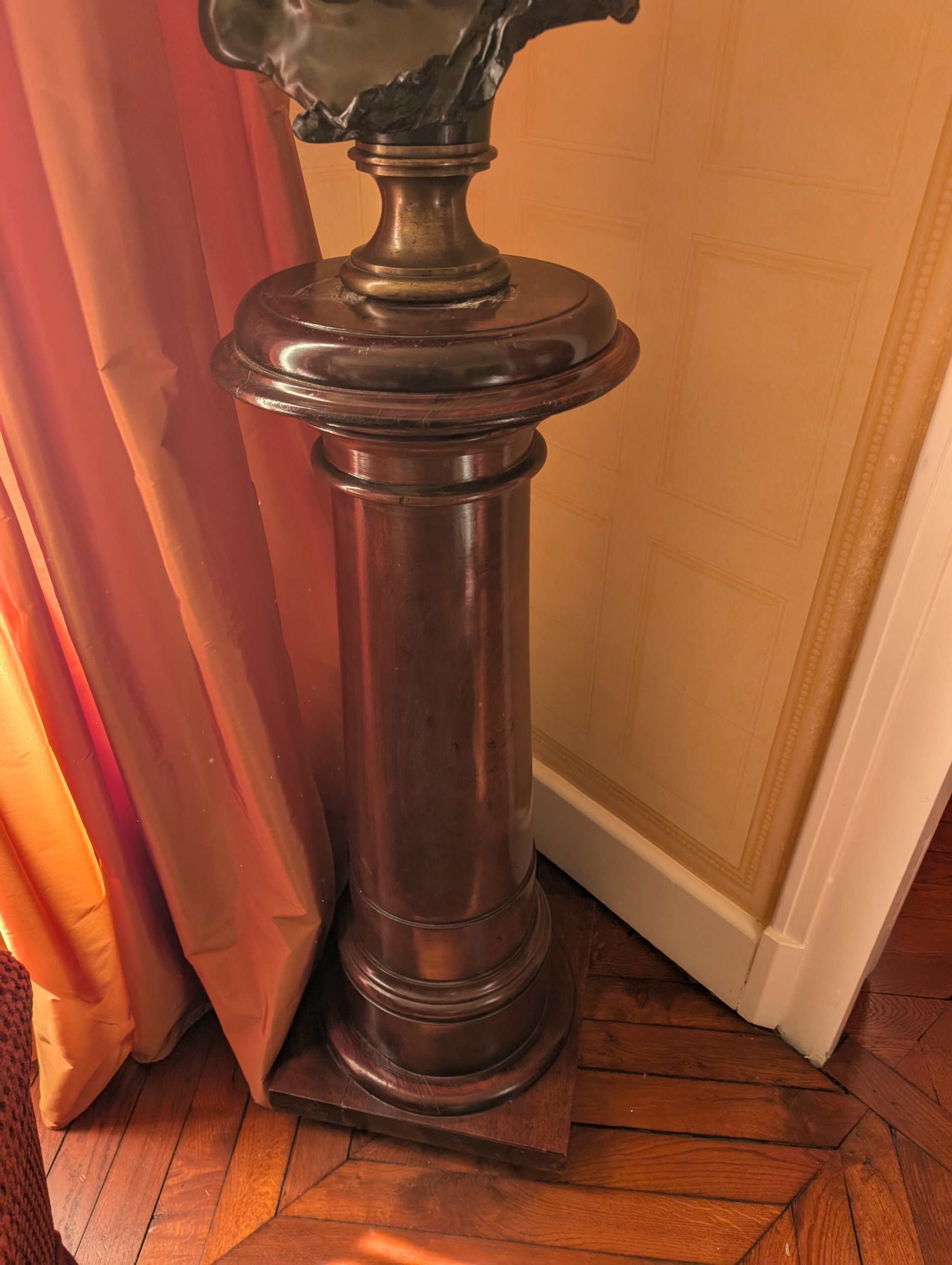 en acajou mouluré et placage d'acajou, le fût fuselé à bagues terminé par un socle carré.