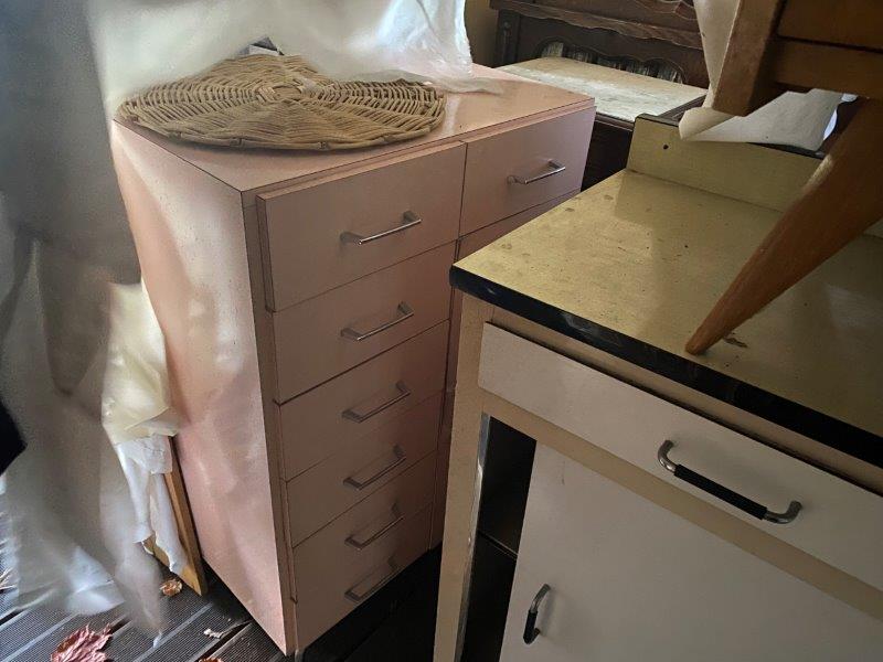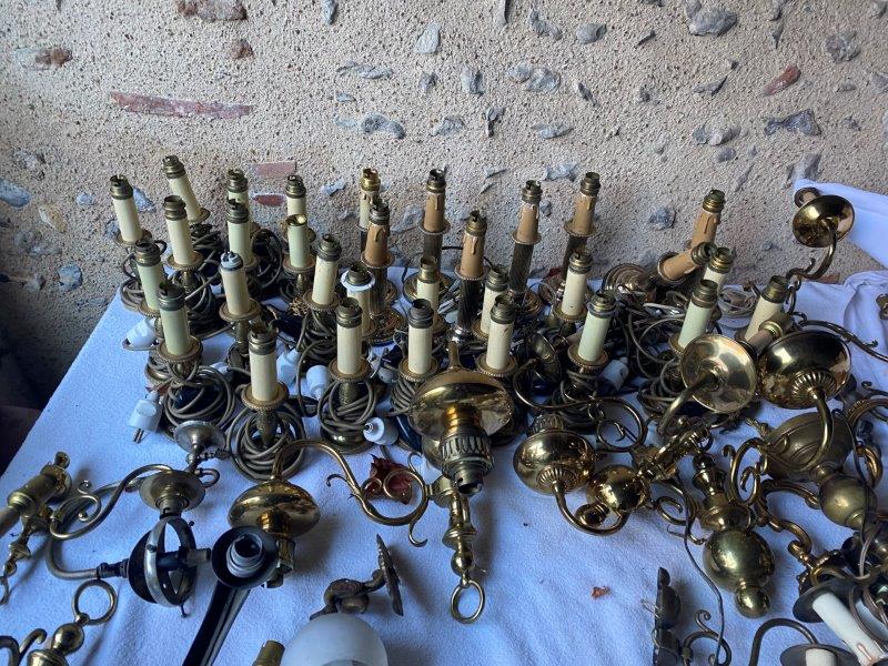 comprenant notamment lustre, bougeoirs montés à l'électricité provenant de l'hôtel et du restaurant du Lion d'Or, céramiques, horloge murale, commode en bois, buffet et meuble en formica.