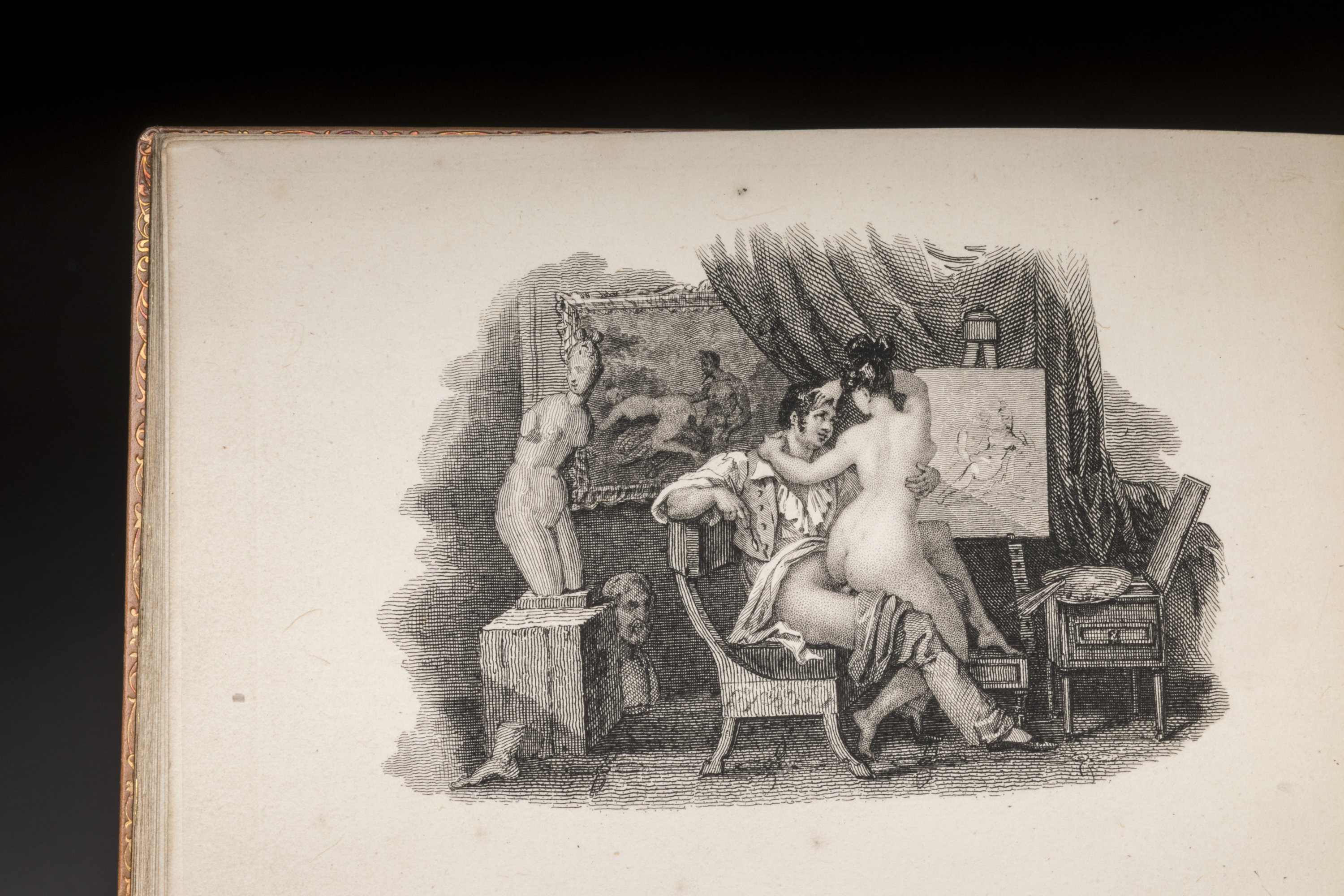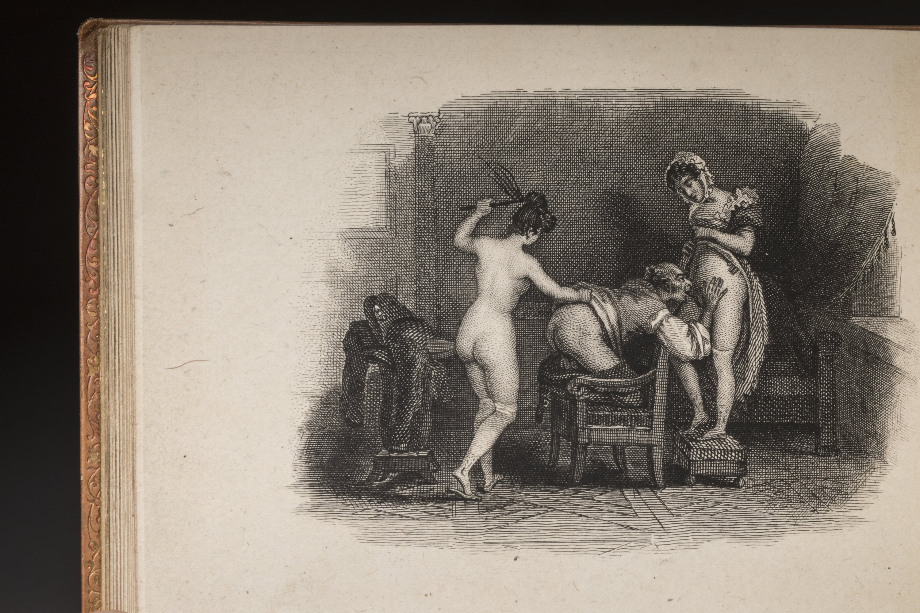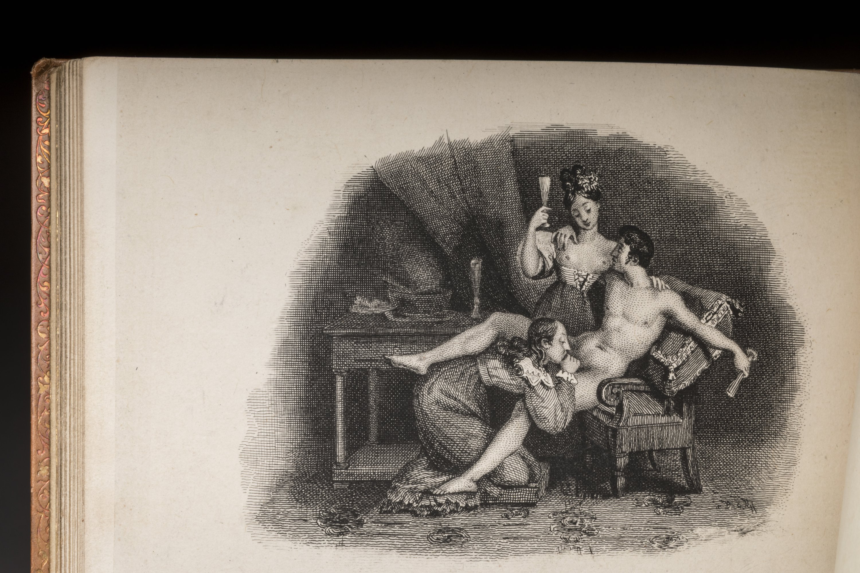 A ca. 1825-1830 set of three illustrated erotica books entitled La chasse aux papillons, Le triomphe de l'amour and Le diable emporte l'amour (The Butterfly Hunt, The Triumph of Love & May The Devil Take Love Away).