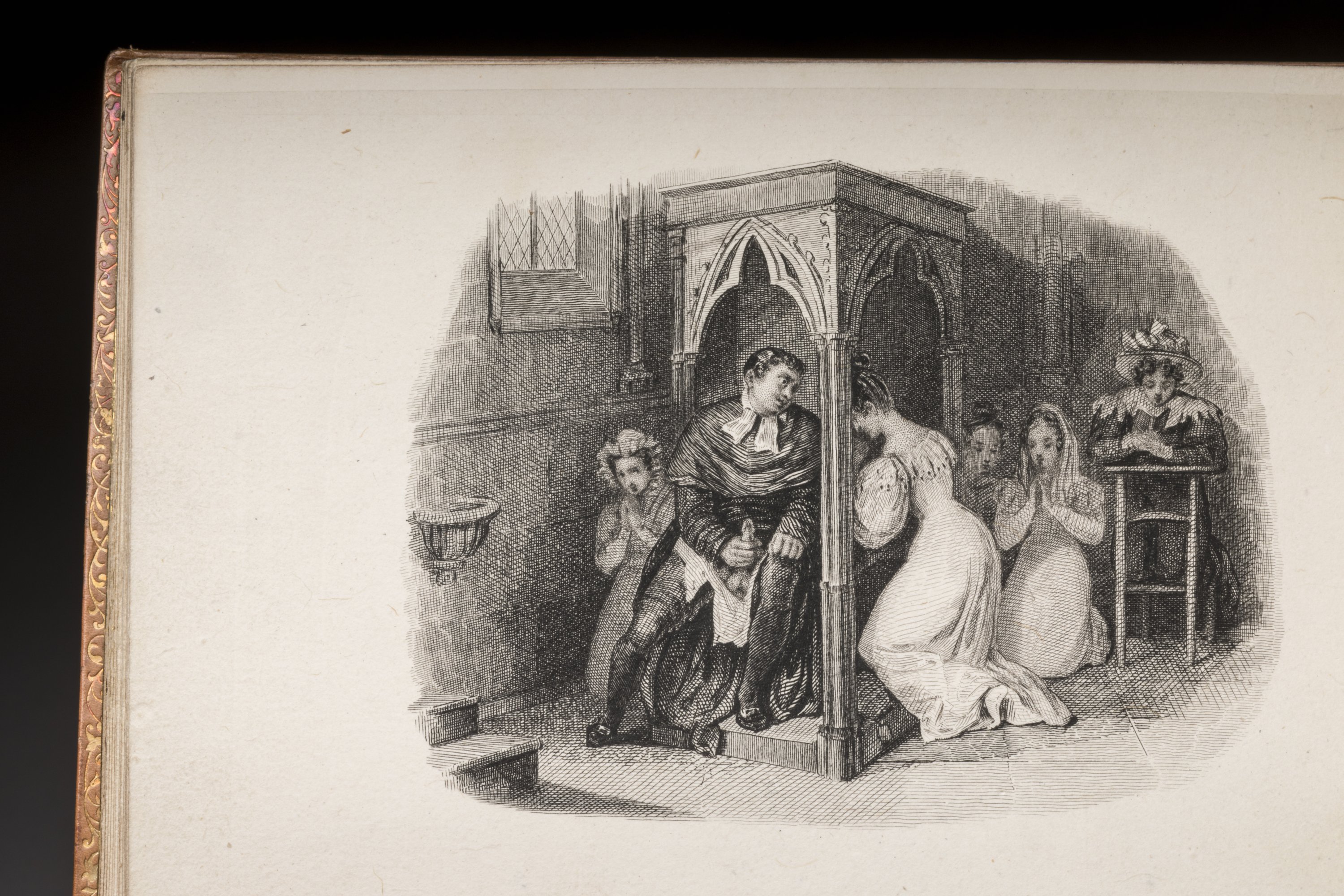 3 volumes in-12 à l'italienne (95 X 135 mm), chacun de 26 pages en comprenant le titre, chacun illustré de 12 lithographies hors-texte protégées par des serpentes de Chine. Plein veau glacé blond ; encadrement de 3 filets droits avec fleurons d'angle. Toutes tranches dorées. Fine reliure de la seconde partie du XIXe siècle.