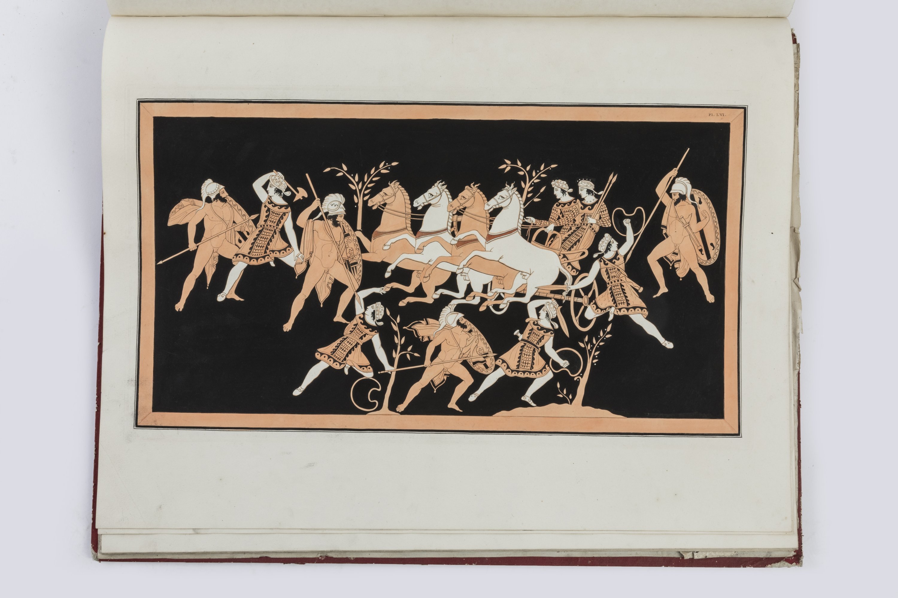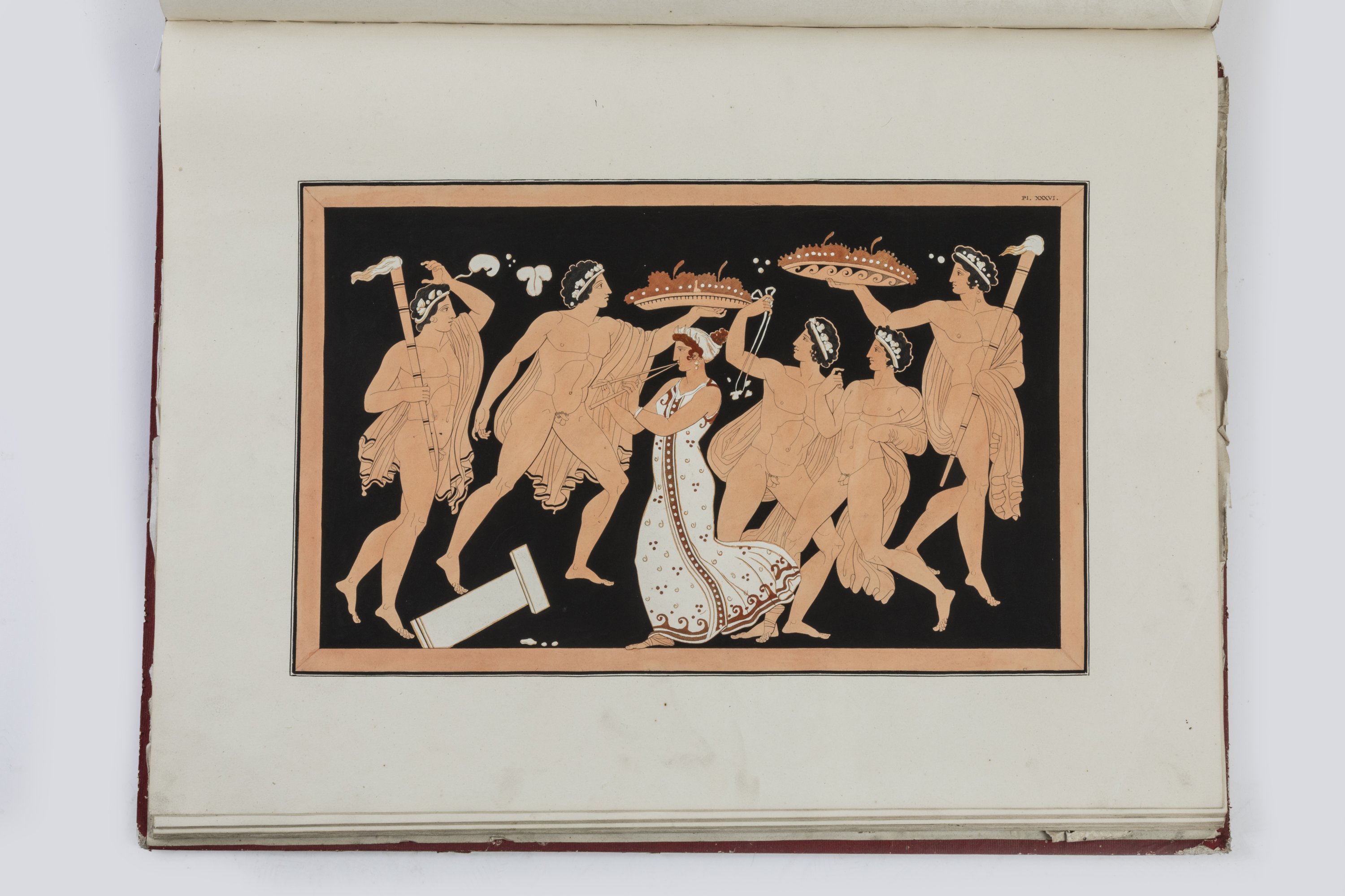 Aubin Louis Millin de Grandmaison. A book entitled "Peintures de vases antiques vulgairement appelés étrusques tirées de différentes collections" (Pictures of so-called "Etruscan" antique vases from various collections) featuring 120 vases.