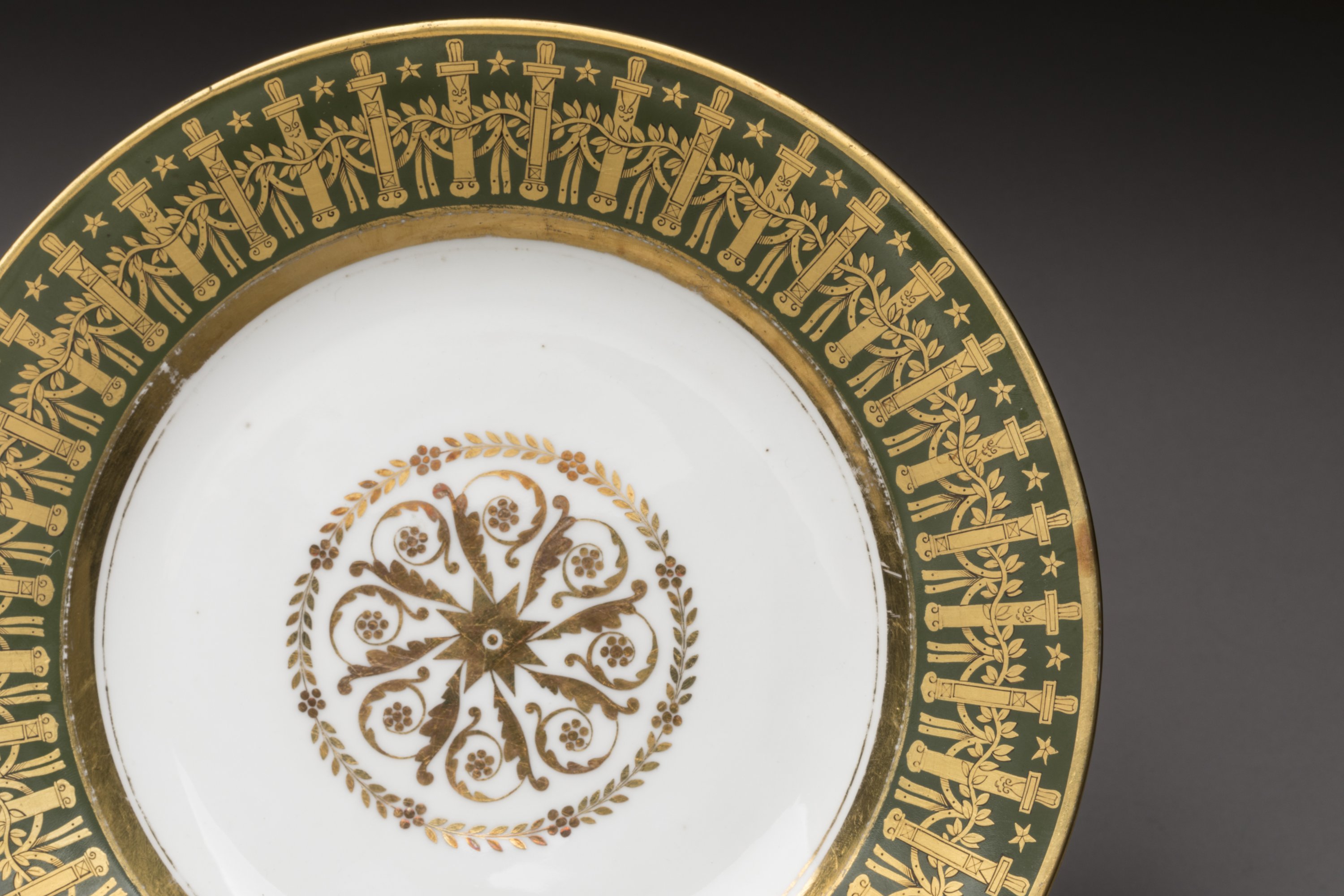 Sèvres and Manufacture de Foescy. A couple of porcelain plates complementing Emperor Napoleon I's personal service. Empire Period.