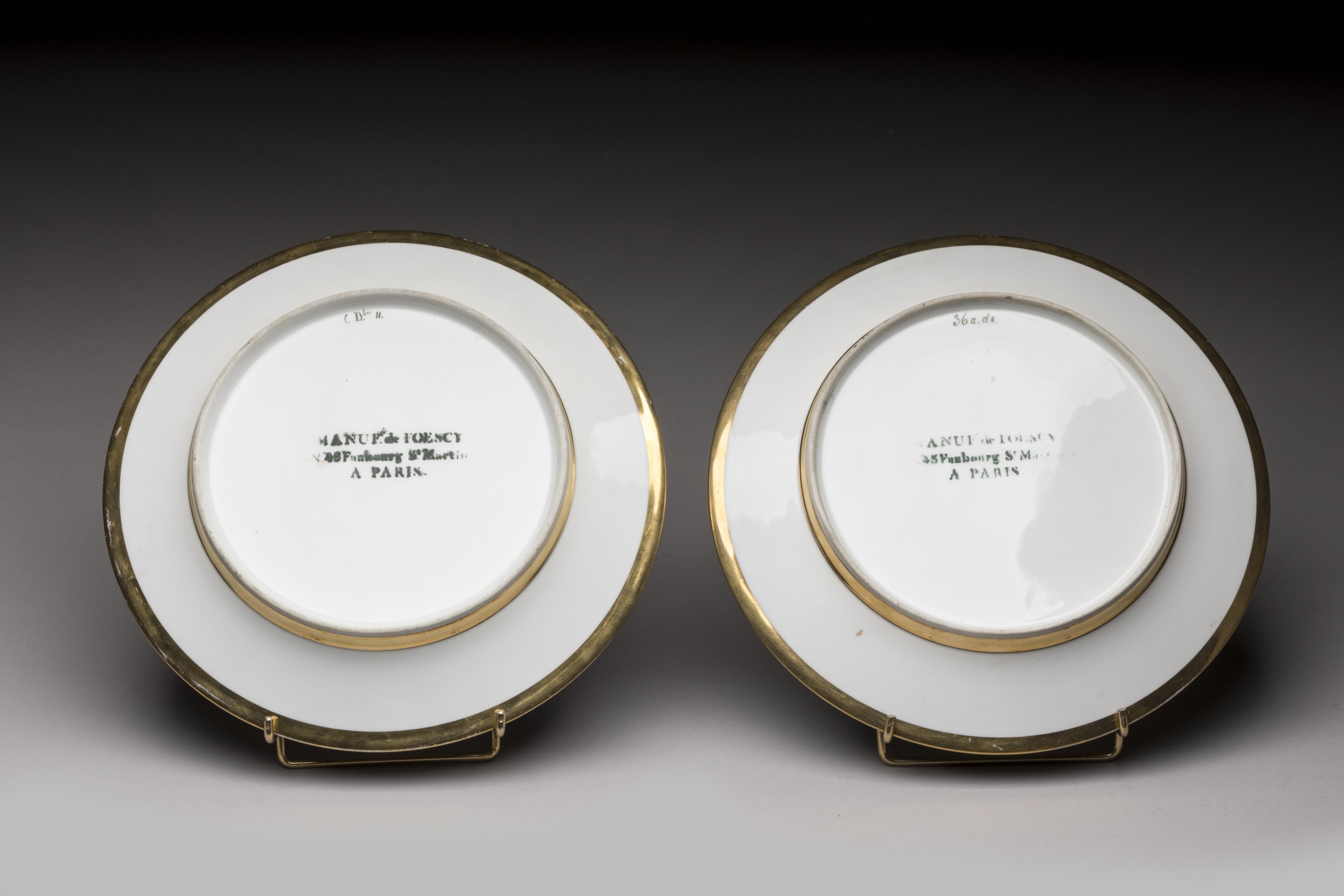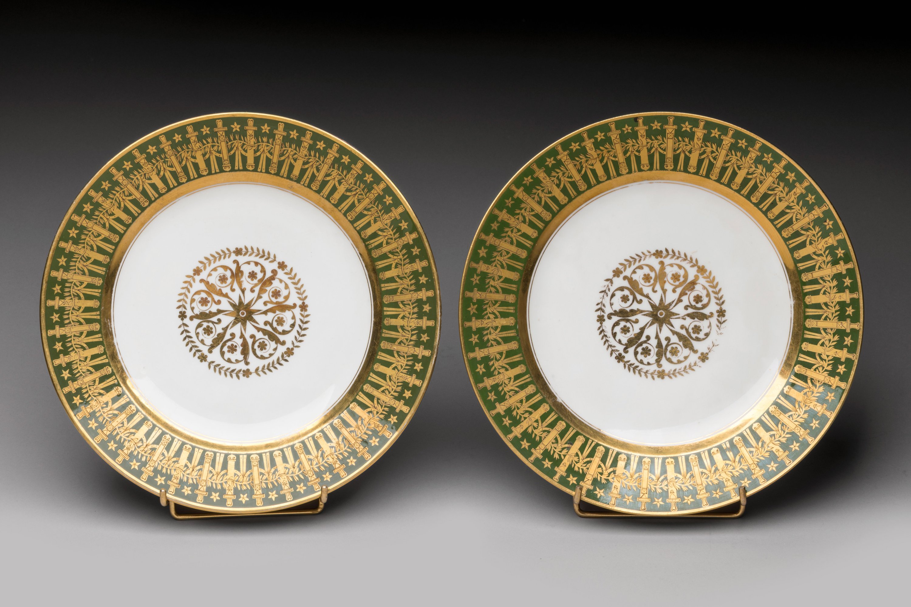 Sèvres and Manufacture de Foescy. A couple of porcelain plates complementing Emperor Napoleon I's personal service. Empire Period.