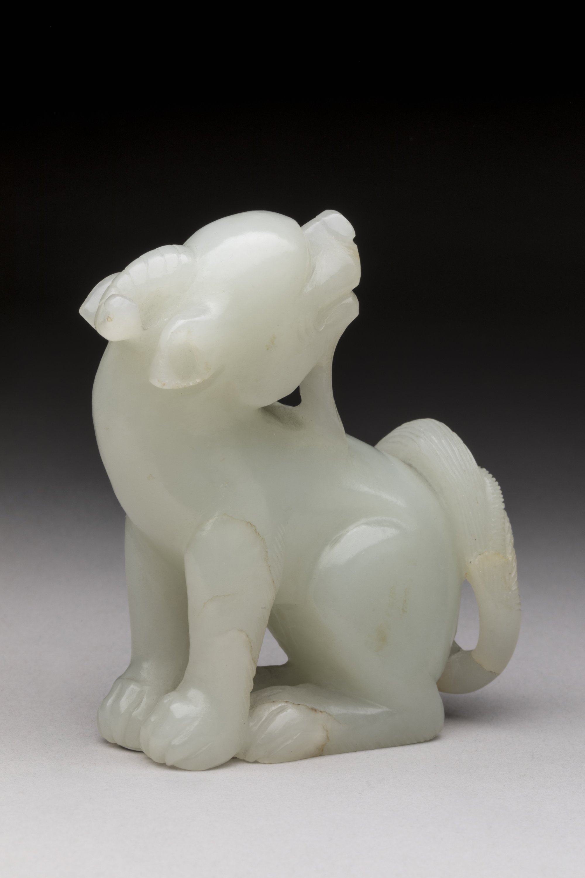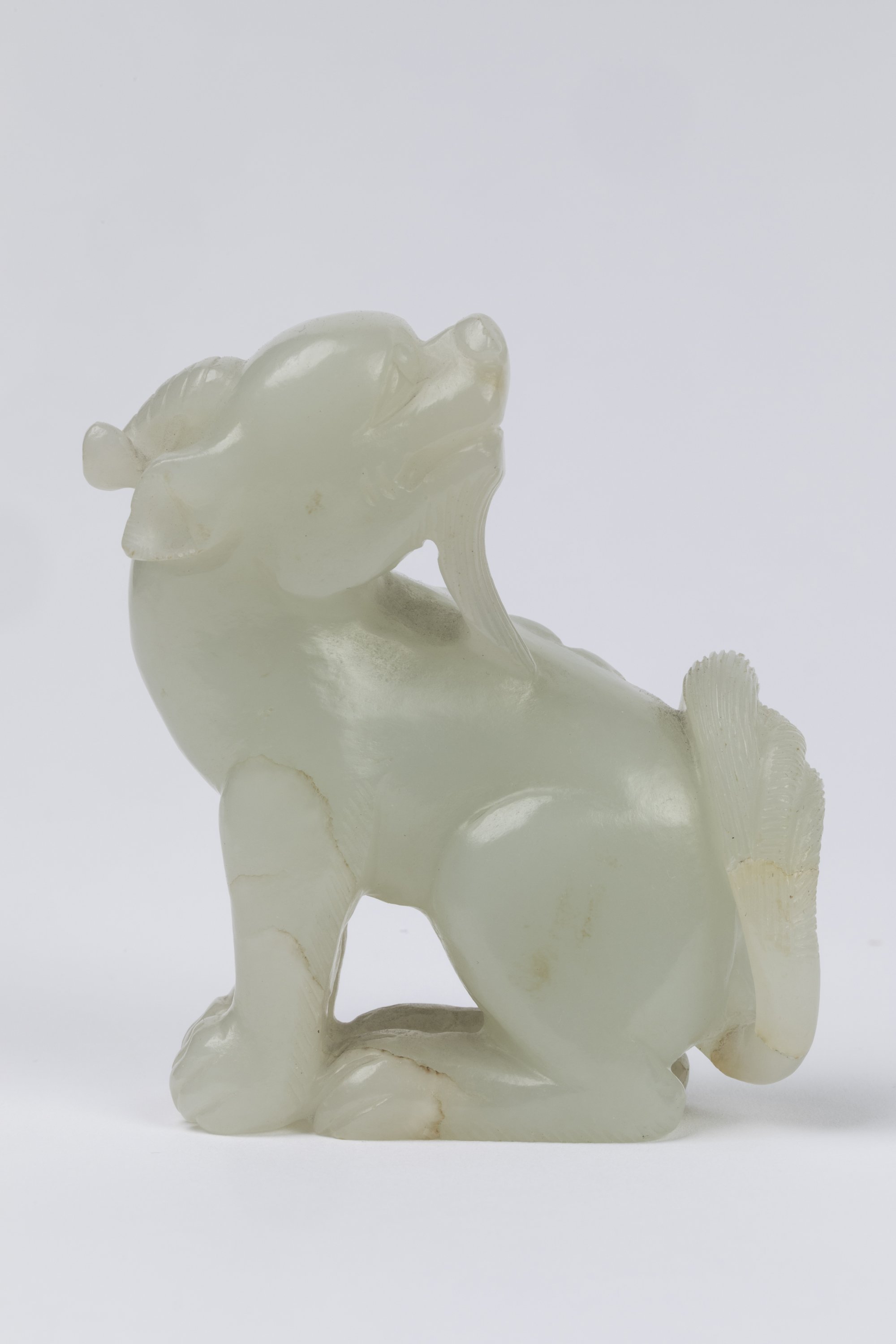 A Chinese celadon jade pixiu carving. Early 20th century.