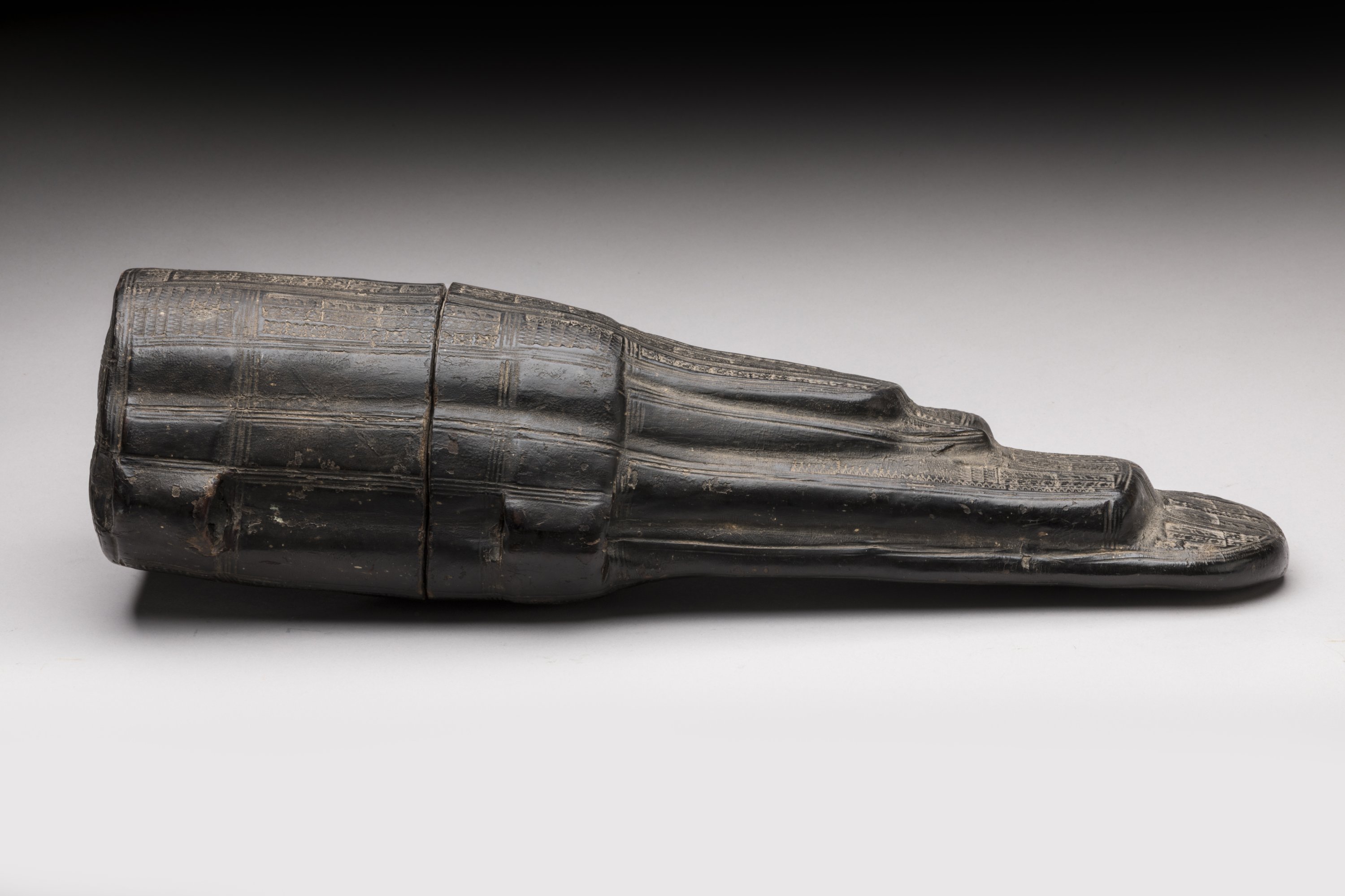 Le travail de reliure aux petits fers apposés sur cette trousse correspond à un travail du Nord ou de l’Est de la France du début du XVIe siècle. Les trois croissants de Lune sont le chiffre du Dauphin, futur Henri II (1519-1559). Ils illustrent sa devise « Donec totum impleat orbem », "Jusqu’à ce qu’elle ait empli tout son orbe", amenant parfois à la confusion avec le symbole de sa maîtresse Diane de Poitiers. Devenu Dauphin de France et Duc de Bretagne à la mort de son frère aîné en 1536, Henri de Valois succède à son père sur le trône de France en 1547. Jean Pot (1510-1571), seigneur de Chemault, qui sera ambassadeur à Rome, Vienne et en Angleterre, est alors à la tête des 17 Valets tranchants de la maison du Roi, tandi que celle de la Reine Catherine de Médicis comporte pas moins de 24 Ecuyers tranchants. Le registre des « Officiers des maisons des roys, reynes, enfans de France, et de quelques princes du sang, depuis le règne du roy St Louis jusqu'à Louis XIV » (BNF, Français 7854) permet de retrouver la fine fleur de la noblesse française dans ces fonctions : les familles de Maillé, du Puy du Fou, d’Espinay Saint Luc, Polignac, Montperat Leur dimension est autant pratique que symbolique et hiérarchique, notamment dans cette France où la table reste un lieu de représentation du pouvoir.