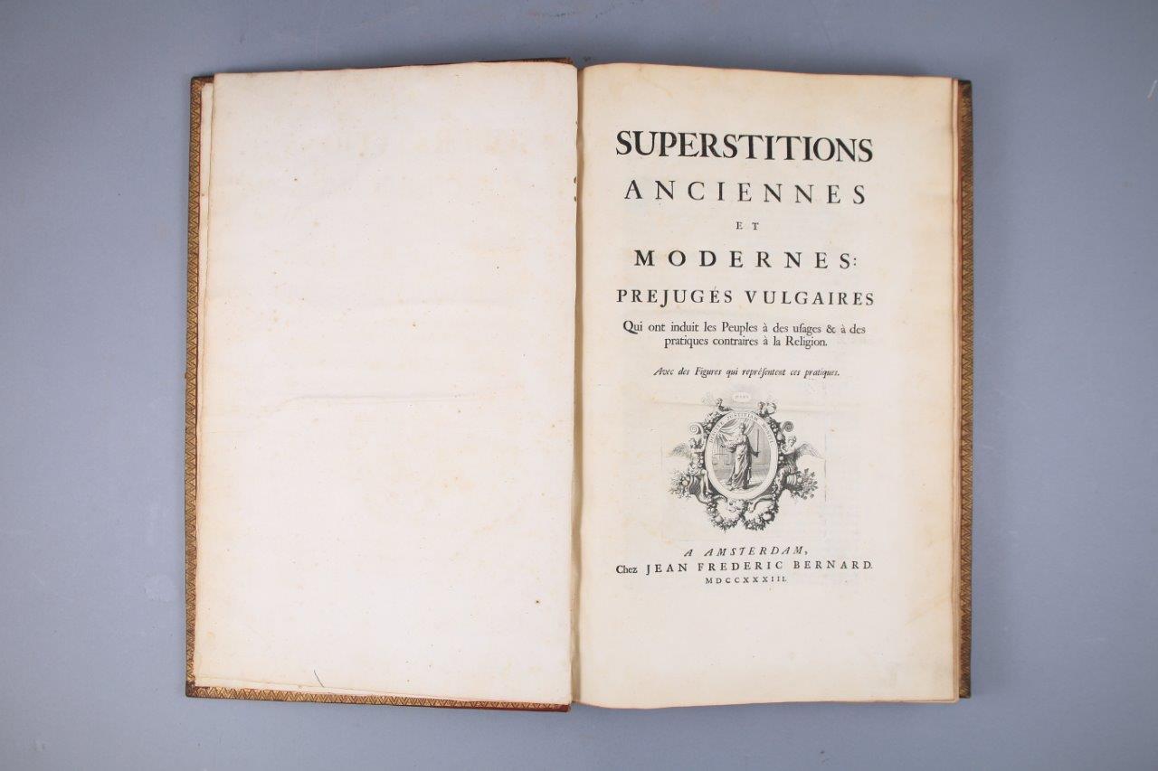 Superstitions anciennes et modernes et préjugés vulgaires qui ont induit les peuples à des usages contraires à la religion. Amsterdam, Jean-François Bernard. 1733-1736. 2 tomes en 2 volumes. .