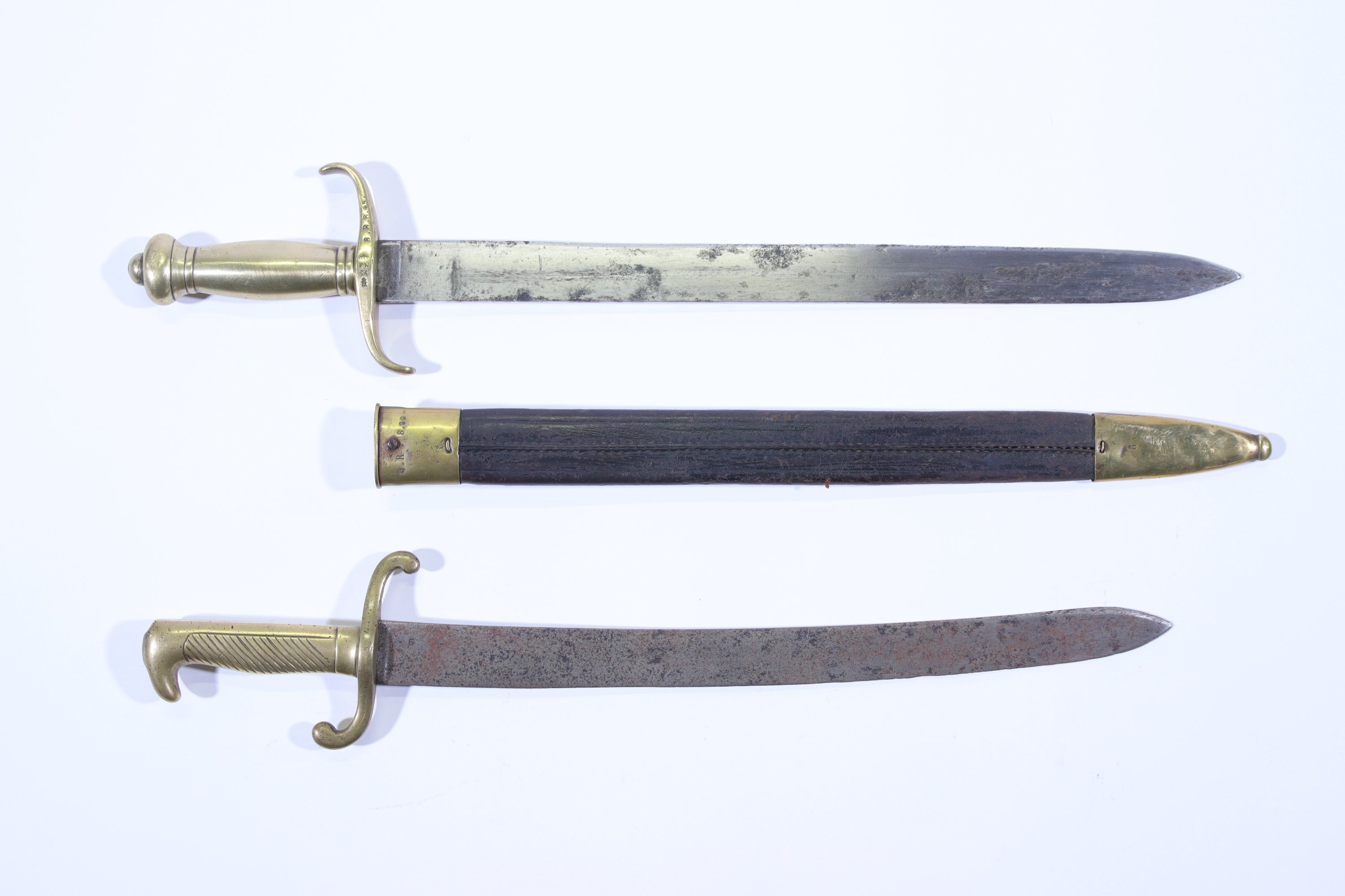 Monture en bronze datée 54. Monture et fourreau matriculés 8R.845 (et 90). Lame poinçonnée GWB. Long. 61 cm.