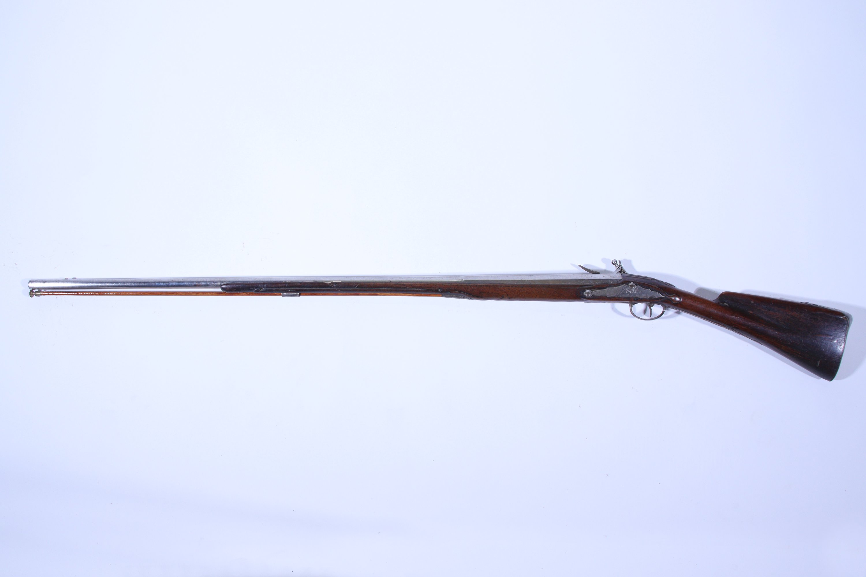 Canon rond à pans au tonnerre. Platine et chien (anciennement changé) à corps plat, gravé de rinceaux. Garnitures en fer découpé et gravé.