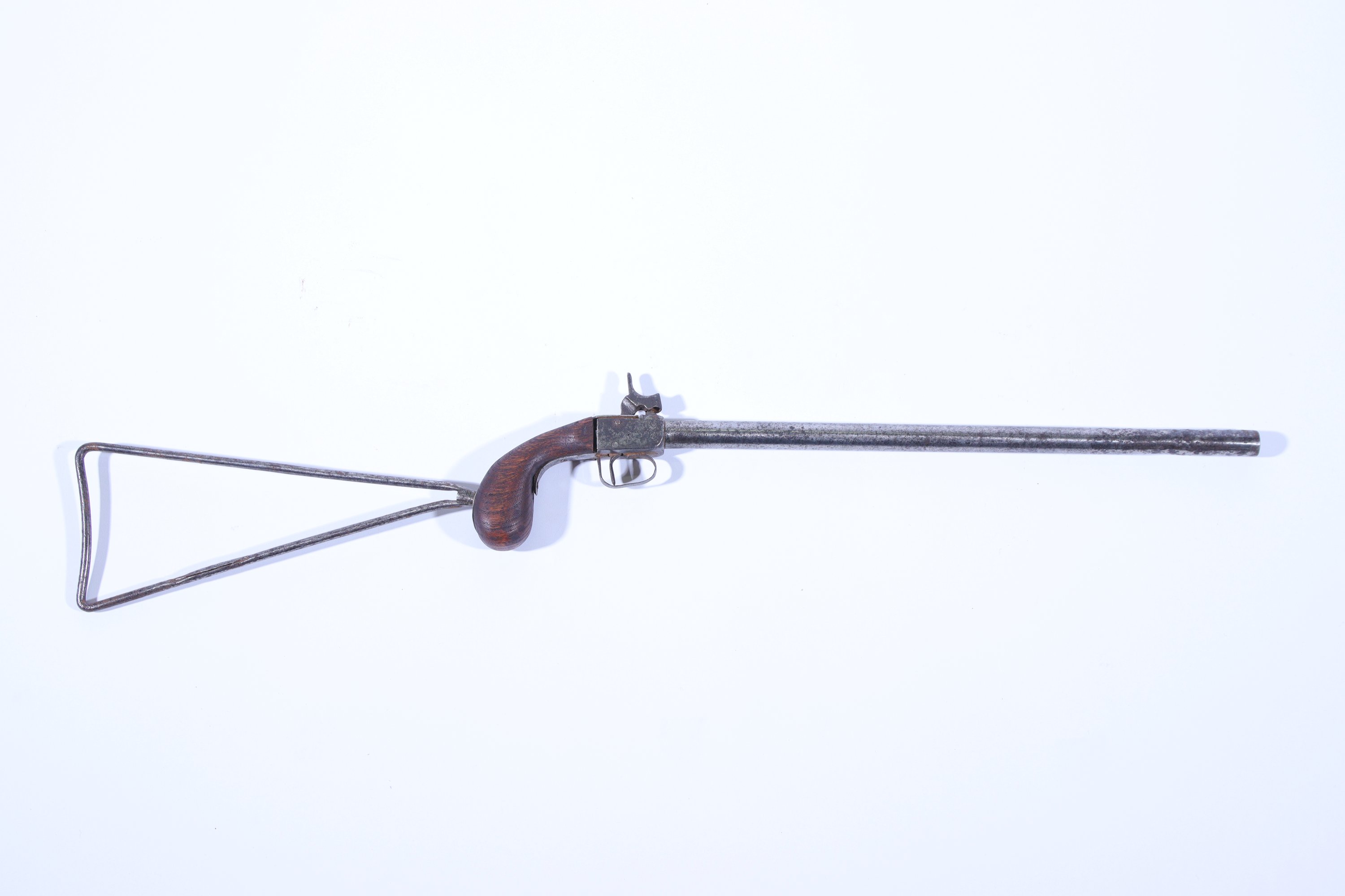 Canon rond. Crosse en noyer avec crosse squelette en fer.