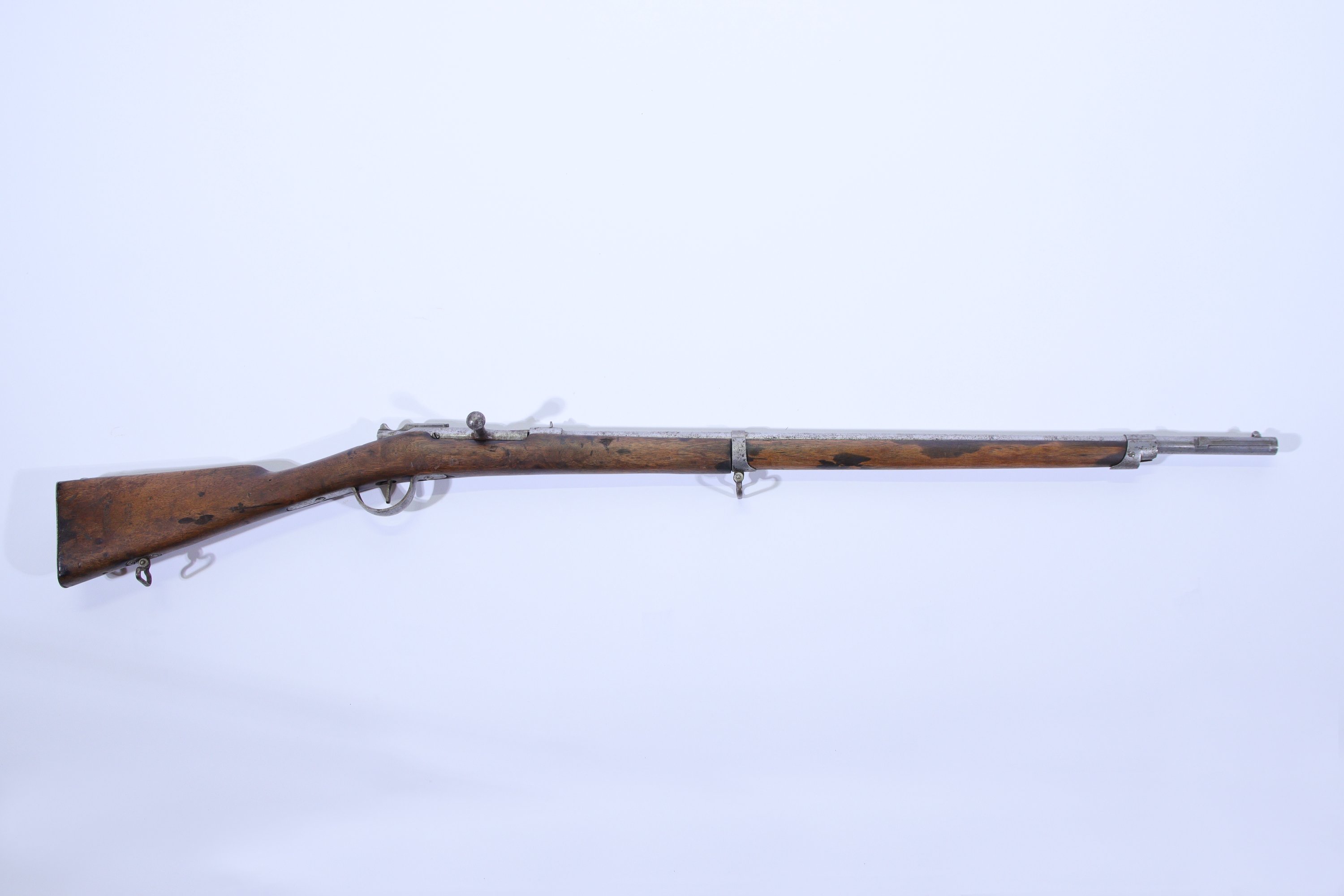 Canon rond, avec cheminée au tonnerre interne. Garnitures en fer (piqûres). Crosse en noyer avec marquage « FUSIL D’HONNEUR »