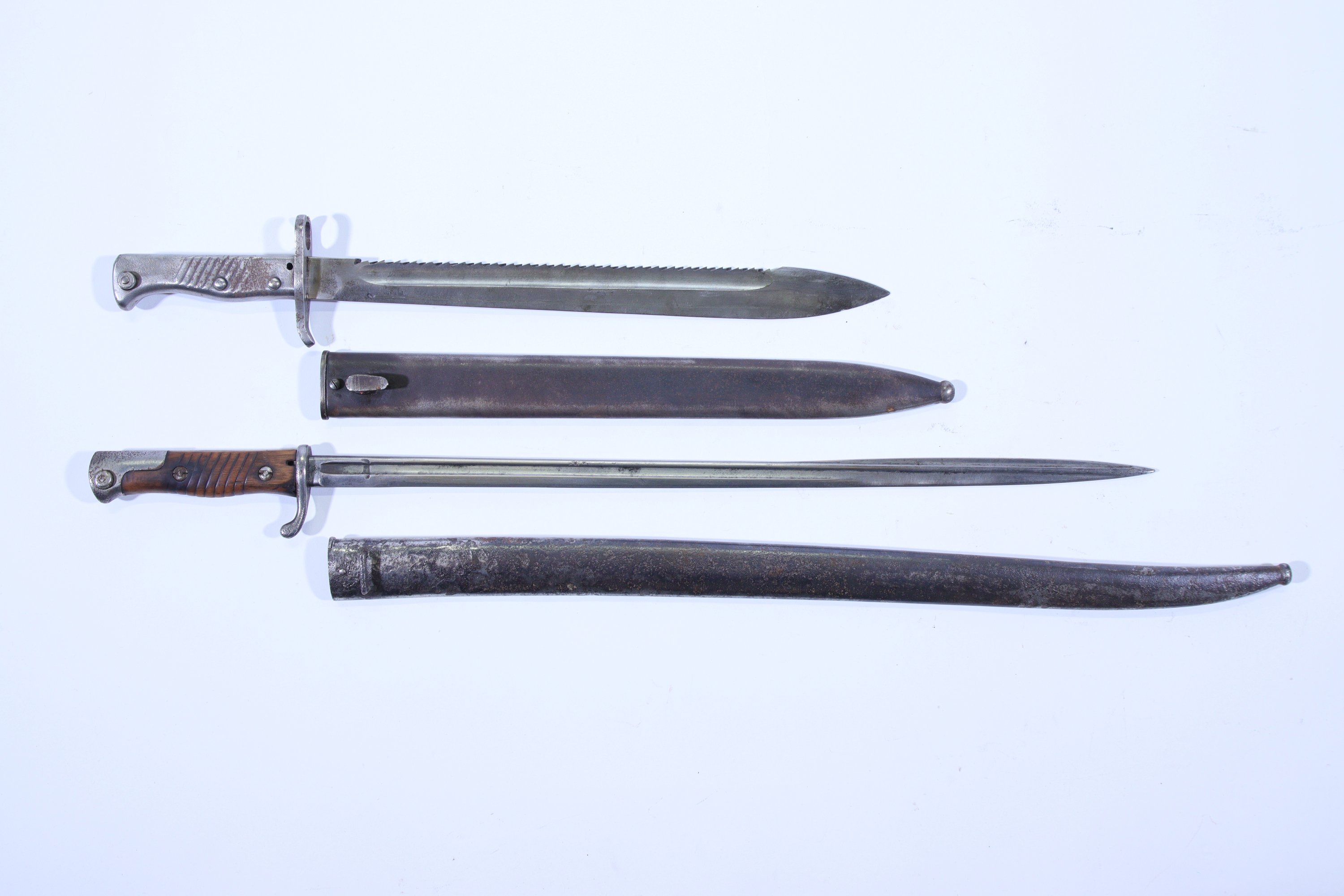 - Une baïonnette 1898, croisière avec reste de matricule 4.G. Lame de Erfurt avec un fourreau dépareillé