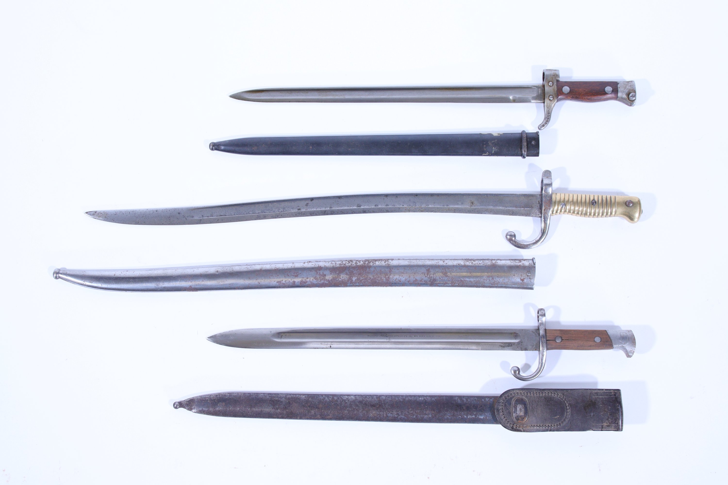 - Baïonnette modèle 1892 à plaquettes de bois, gros rivet et quillons. Fourreau bronzé. A.B.E.